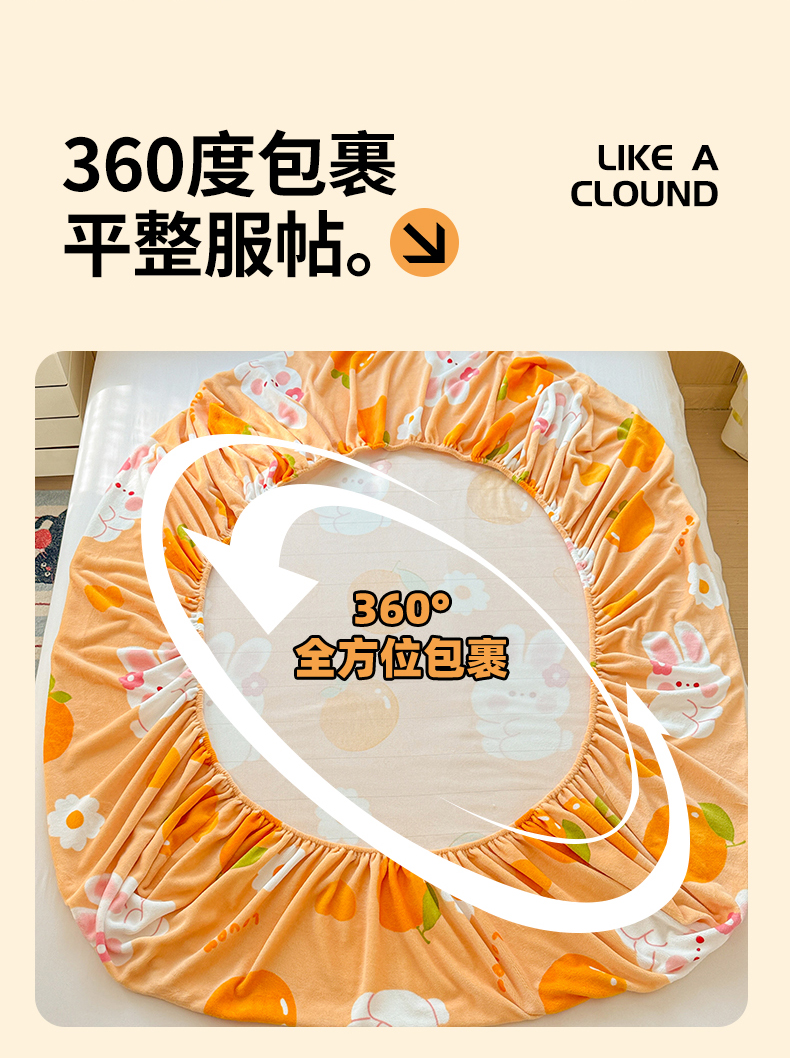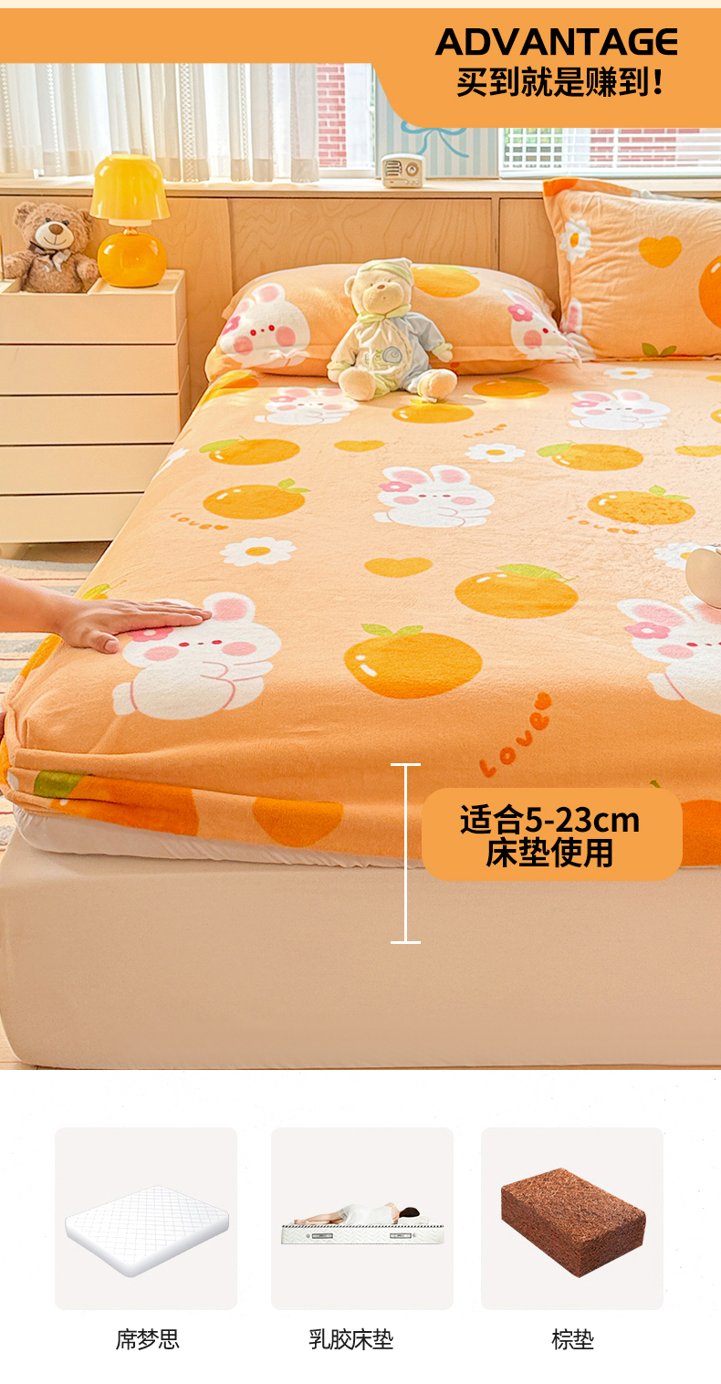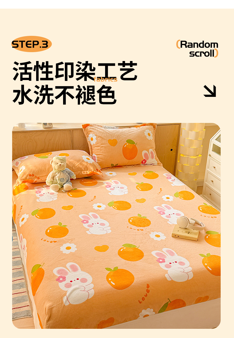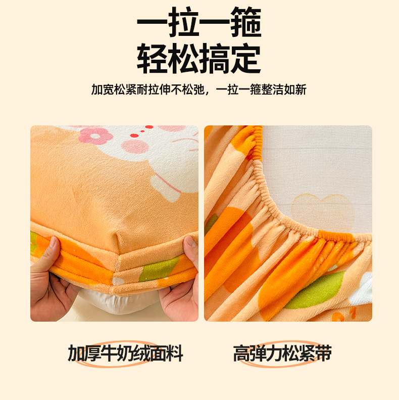 名兮家居 2025新款高克重印花牛奶绒单床笠床笠单件 兔兔派对