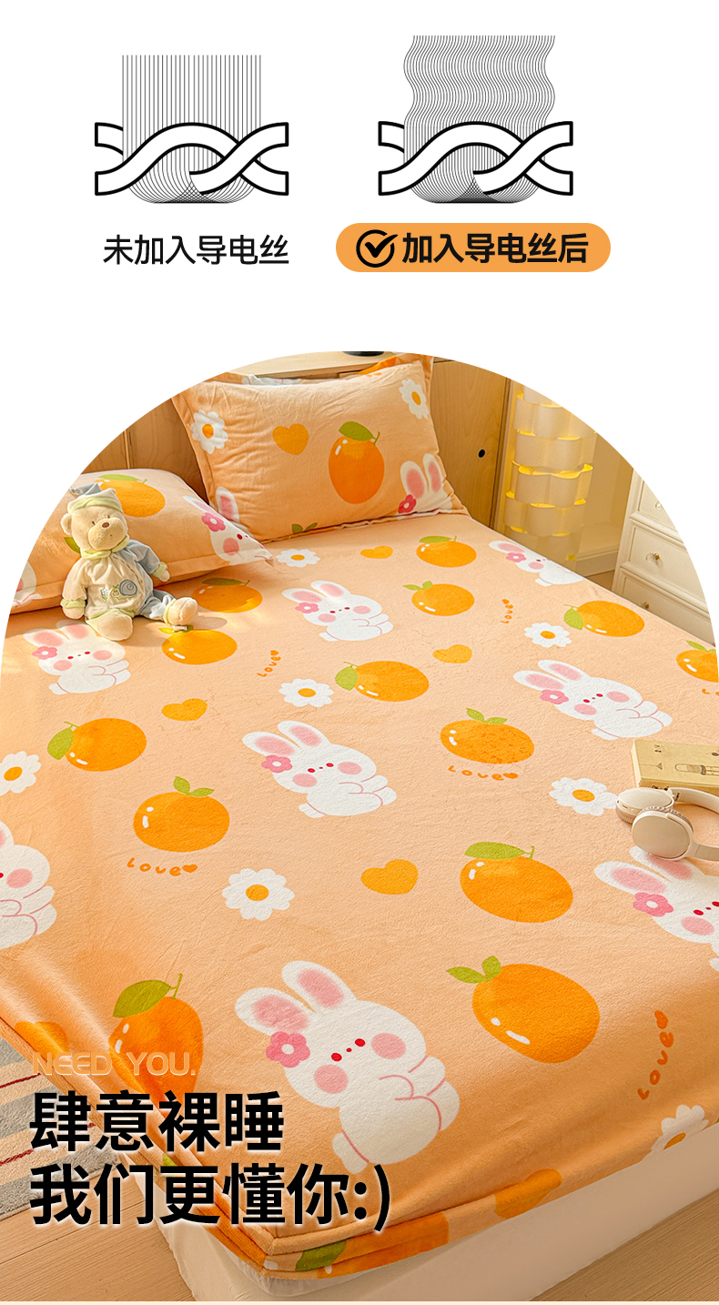 • 91家纺网 家纺一手货源 找家纺 名兮家居 2025新款高克重印花牛奶绒单床笠床笠单件 兔兔派对