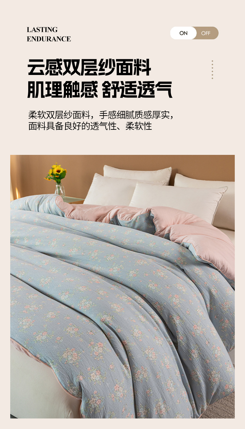 • 91家纺网 家纺一手货源 找家纺 小叮当家纺仓储工厂店 2025新款A类云感双层纱冬被春秋被被子被芯 风轻寄语