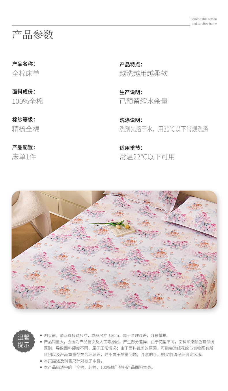 商品名称:元元家居(元元被业) 2025秋冬新款全棉纯棉磨毛印花单床单 大漂亮