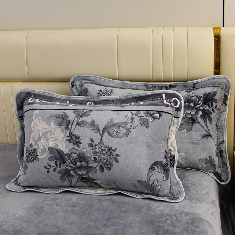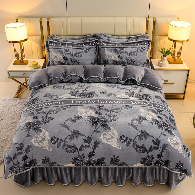 商品名称:沐妍家纺 2025新款8斤加厚保暖金貂绒牛奶绒印花四件套 莫兰迪