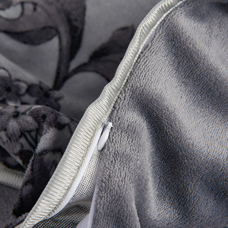 沐妍家纺 2024新款重工刺绣绣花纯色牛奶绒四件套欧式皇冠-绅士灰,皇冠-绅士灰