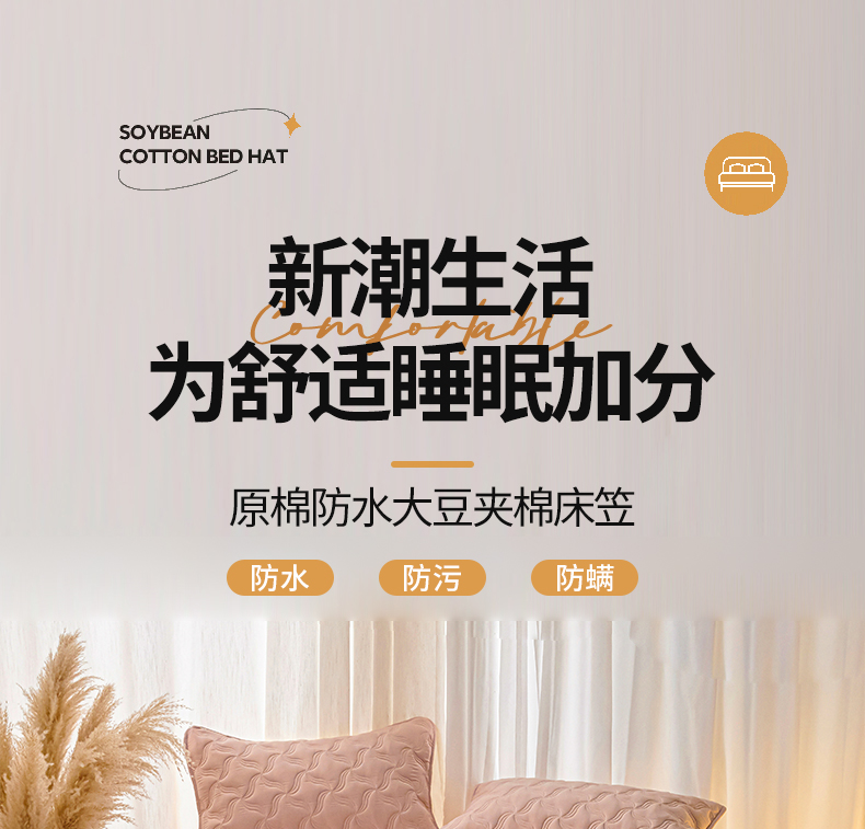 • 91家纺网 家纺一手货源 找家纺 小叮当家纺仓储工厂店 2025新款A类原棉大豆防水床笠单品床笠单件单床笠隔尿夹棉床笠床垫保护罩外贸跨境 爱恋-玉粉