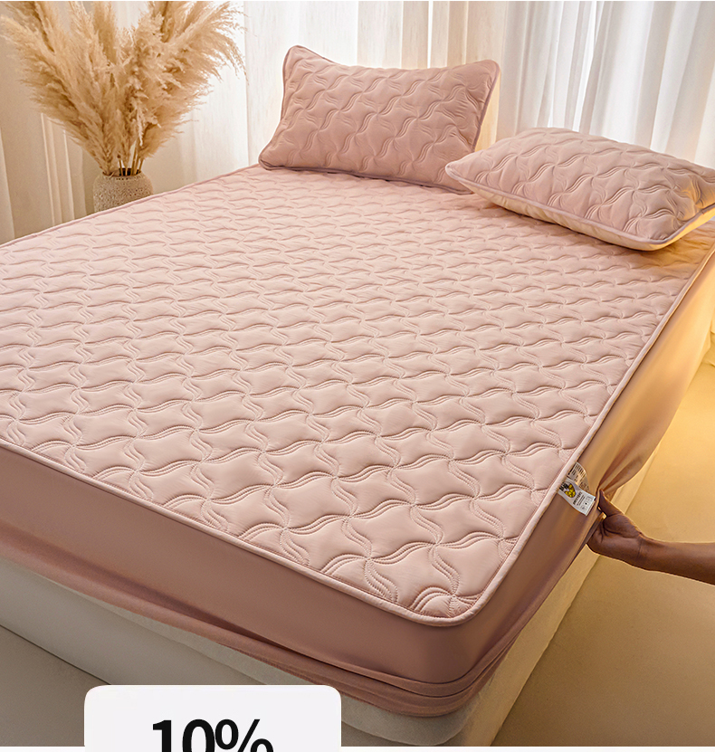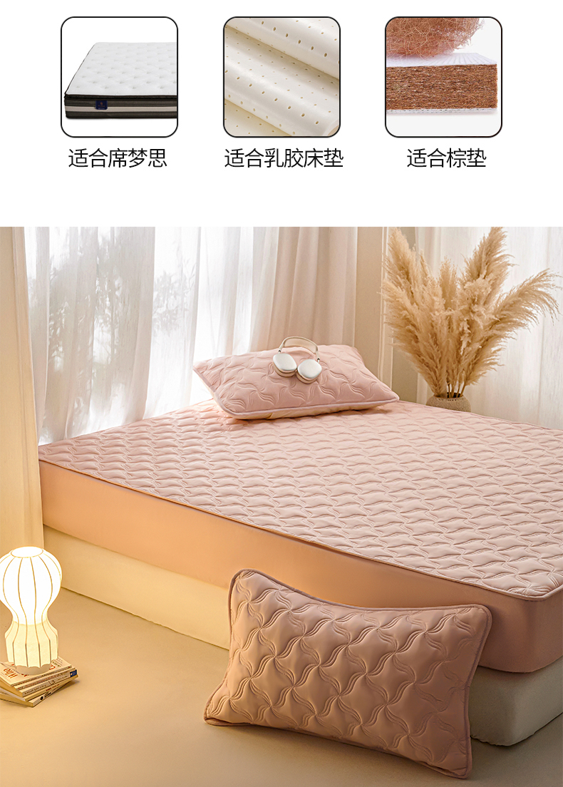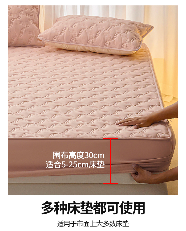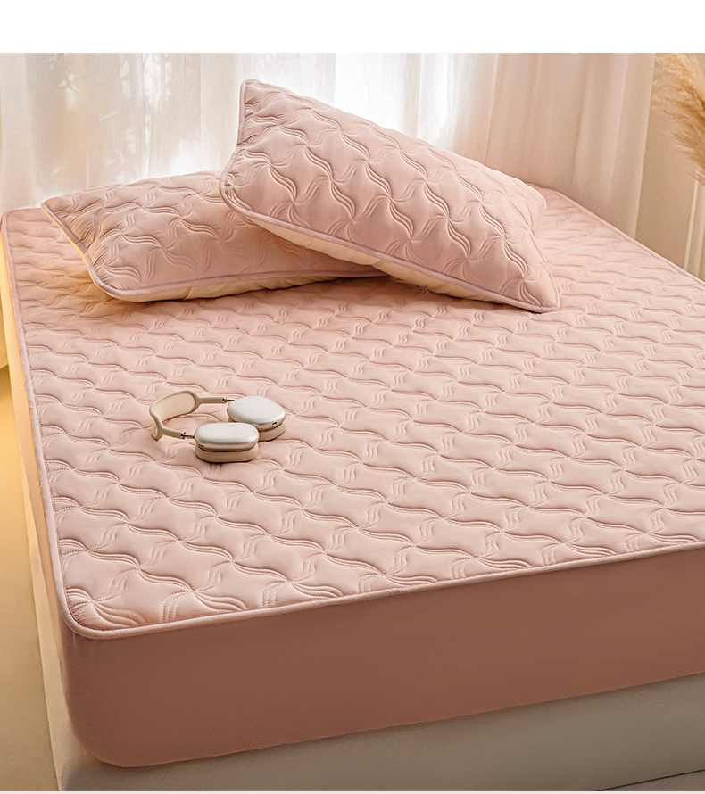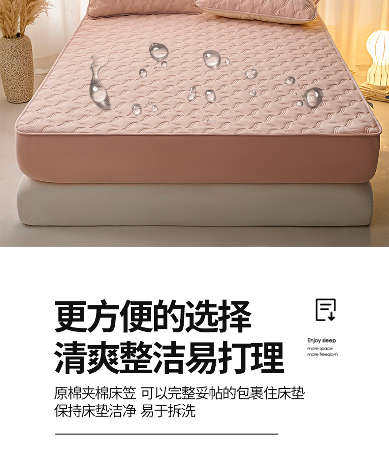 小叮当家纺仓储工厂店 2025新款A类原棉大豆防水床笠单品床笠单件单床笠隔尿夹棉床笠床垫保护罩外贸跨境 爱恋-玉粉
