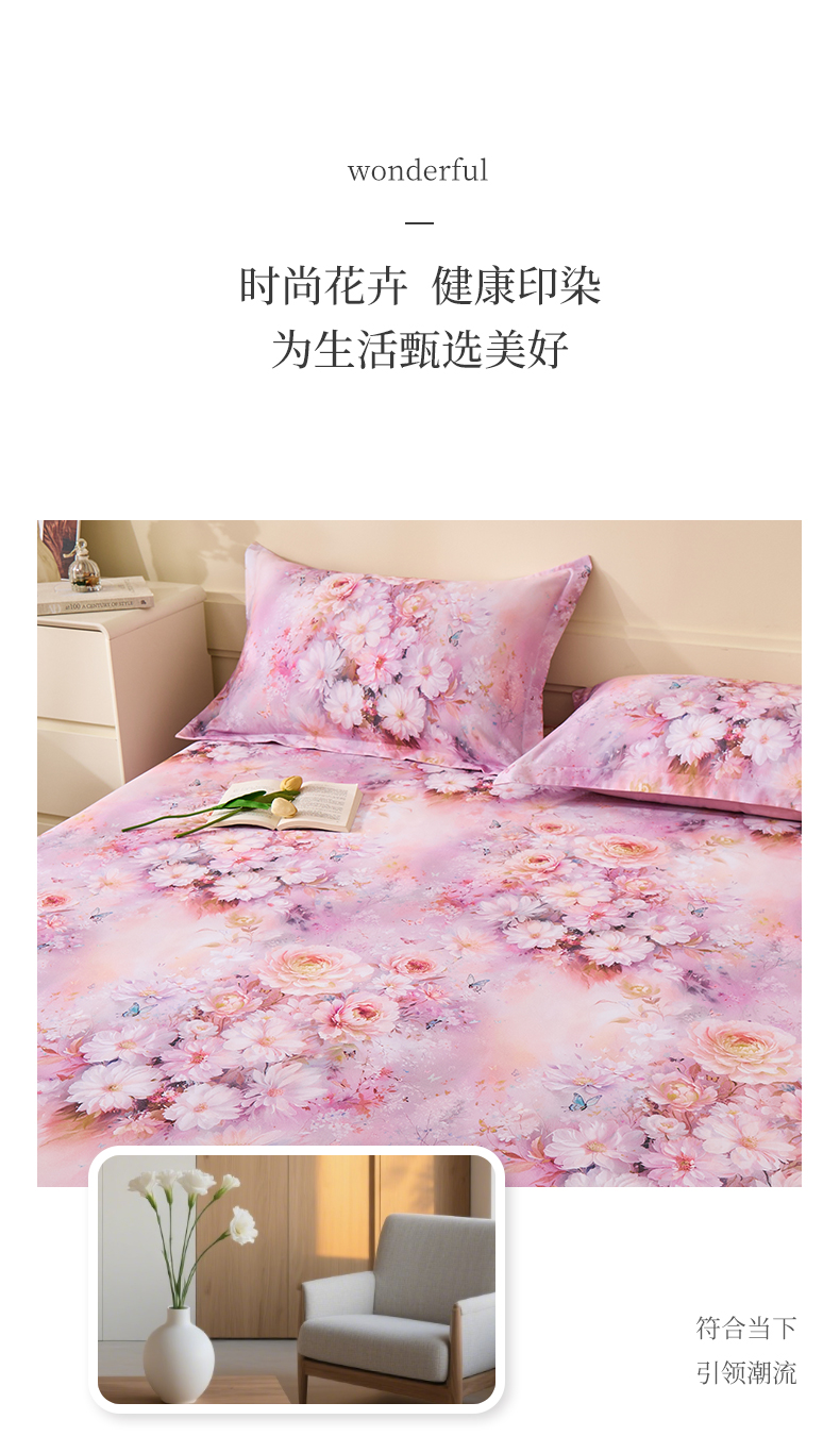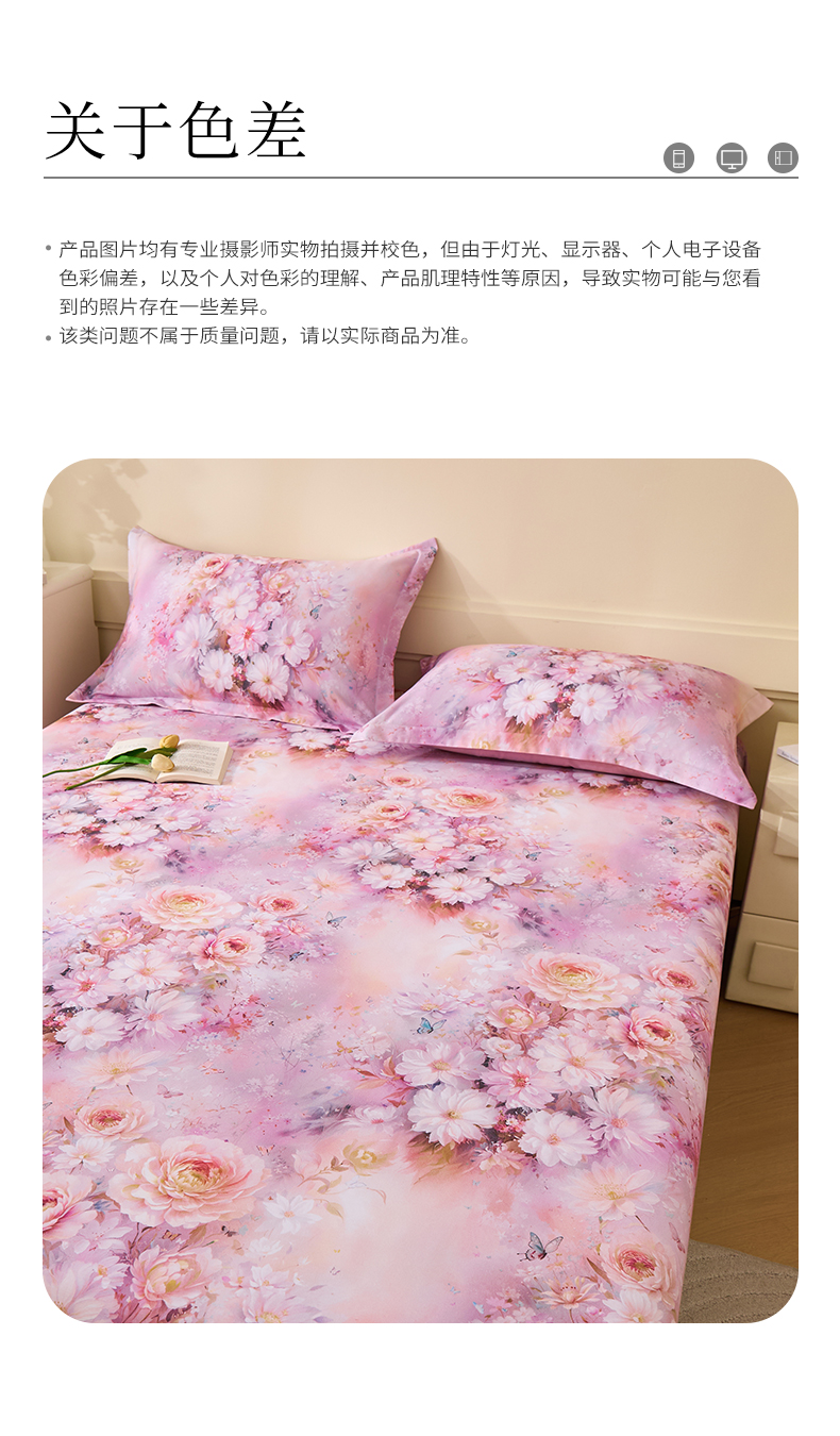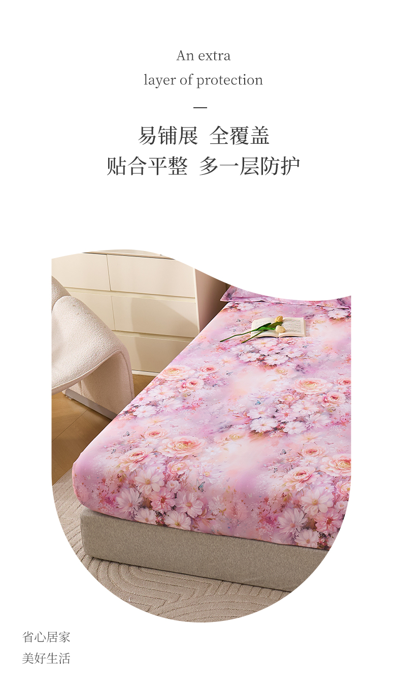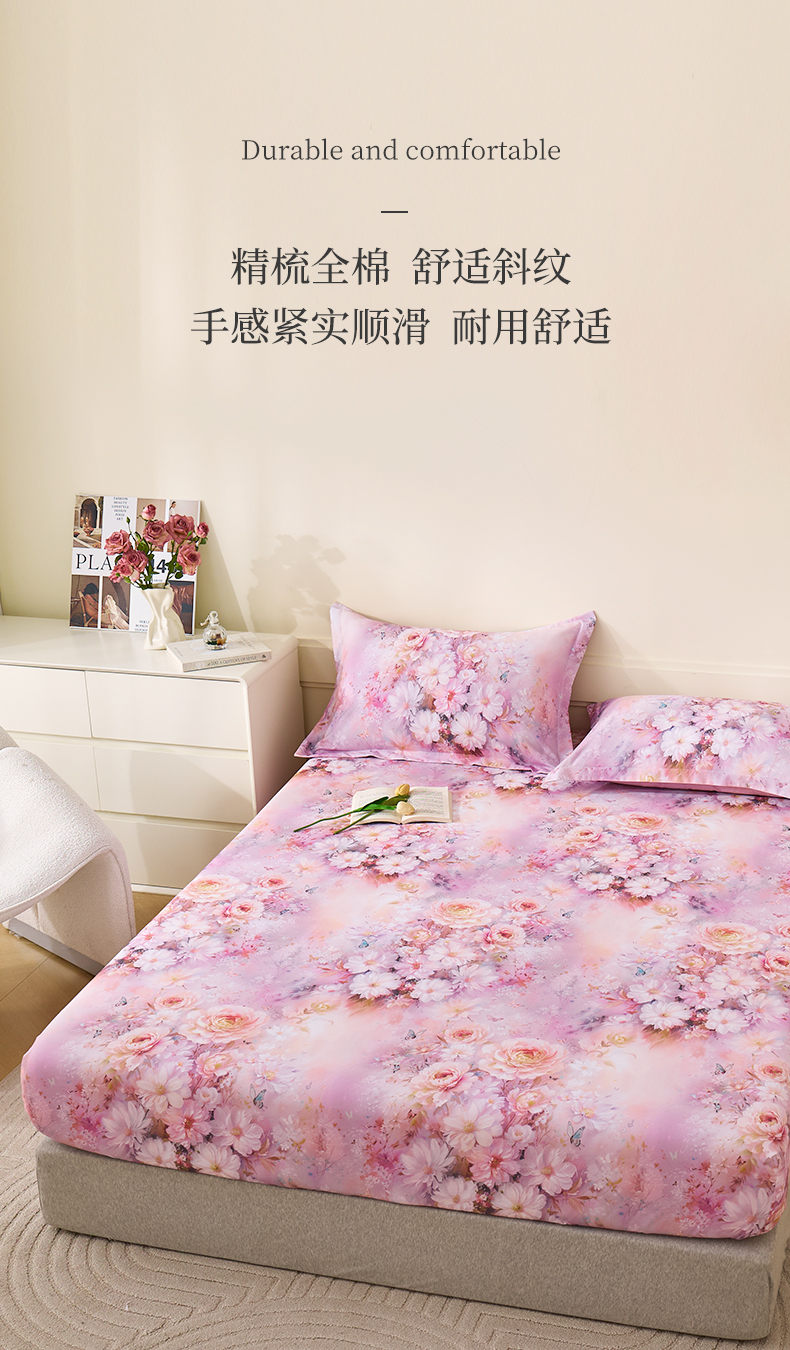 商品名称:元元家居(元元被业) 2025秋冬新款全棉纯棉磨毛印花单床笠 花妍悦粉