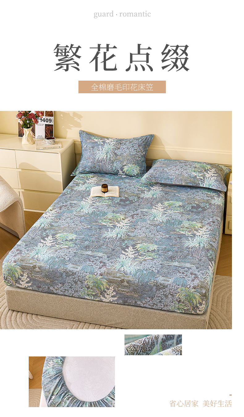 元元家居(元元被业) 2025秋冬新款全棉纯棉磨毛印花单床笠 花妍悦粉