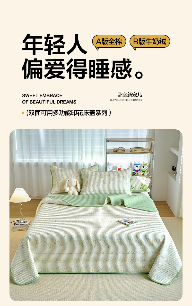 当前位置: 91家纺网 > 商品网购 > 床上用品 > 床盖 > 小叮当家纺仓储工厂店 2025新款A版全棉B版牛奶绒床盖系列单床盖床盖单件 丛草集(A棉B绒)