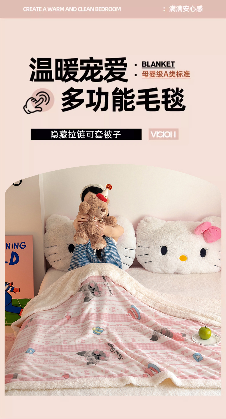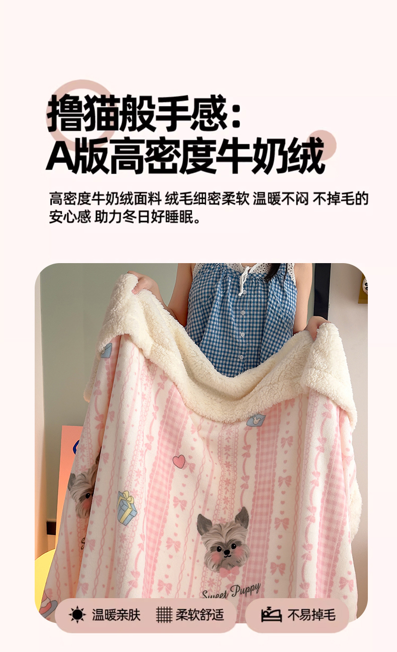 艾特你 2025新款ins羊羔绒牛奶绒可被套休闲毯单被套-毯子图 欢喜