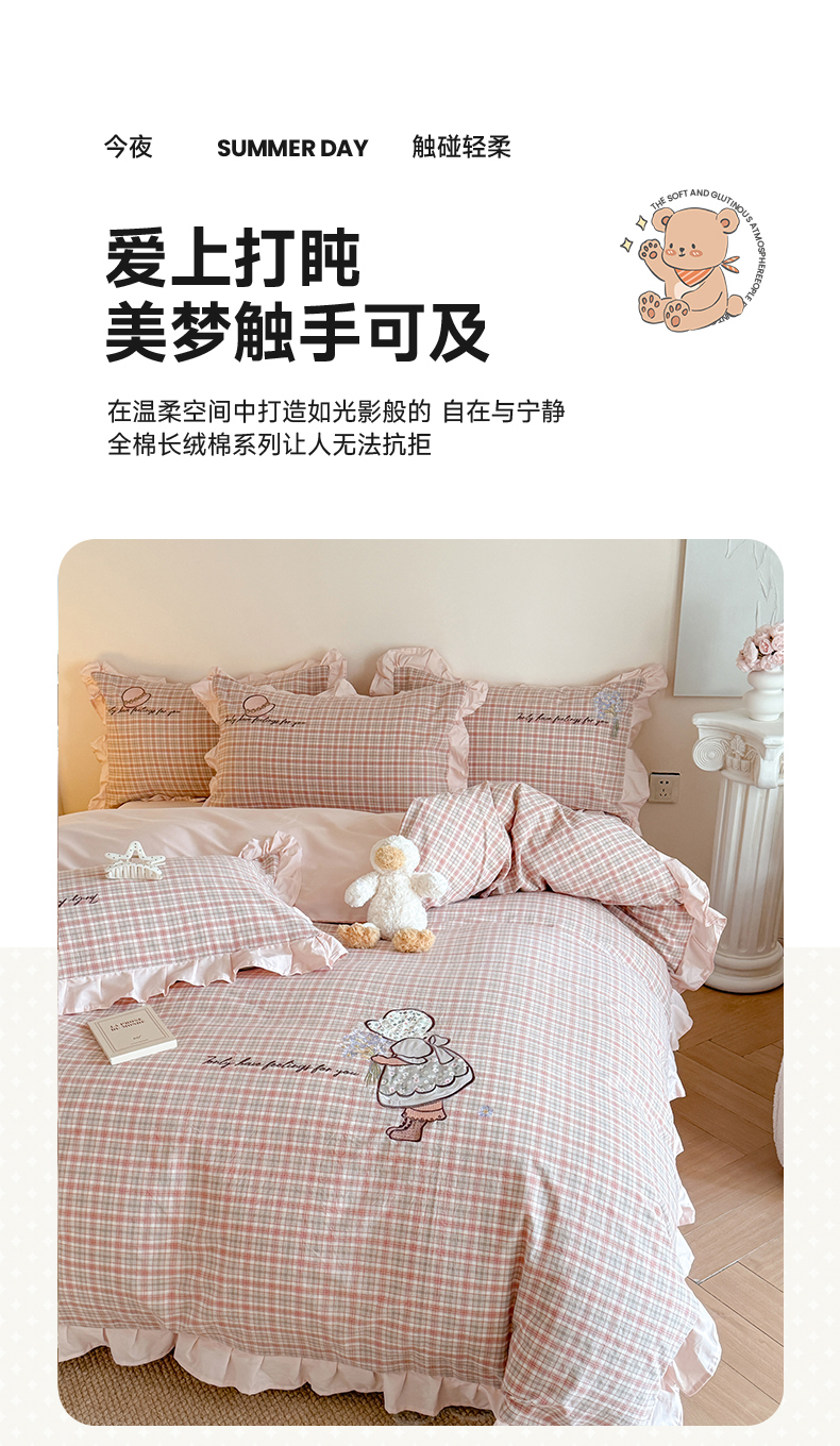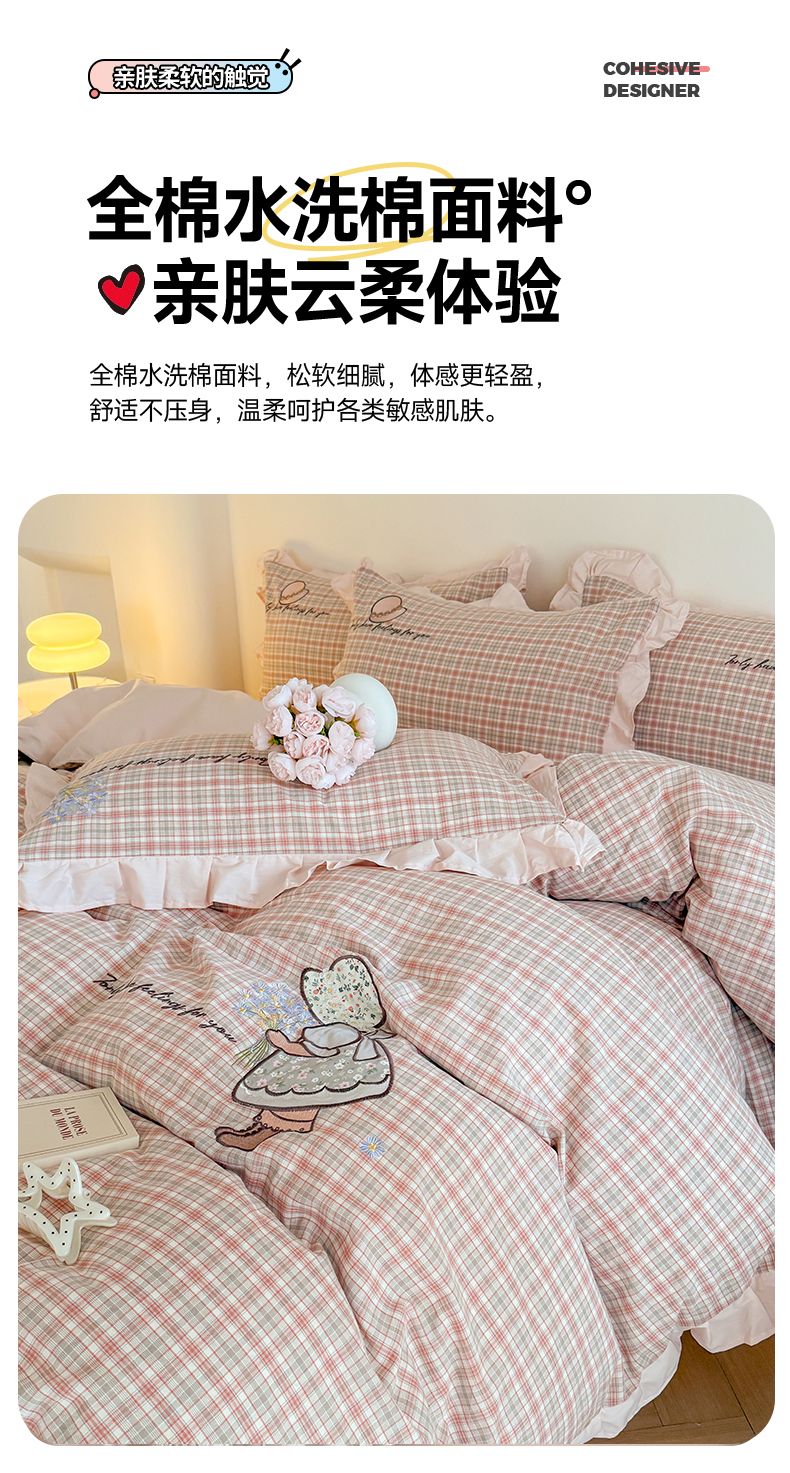 当前位置: 91家纺网 > 商品网购 > 床品套件 > 四件套 > 水洗棉四件套 > 优迈 2025秋冬新款色织水洗棉贴布花边款四件套 童趣-洋气红