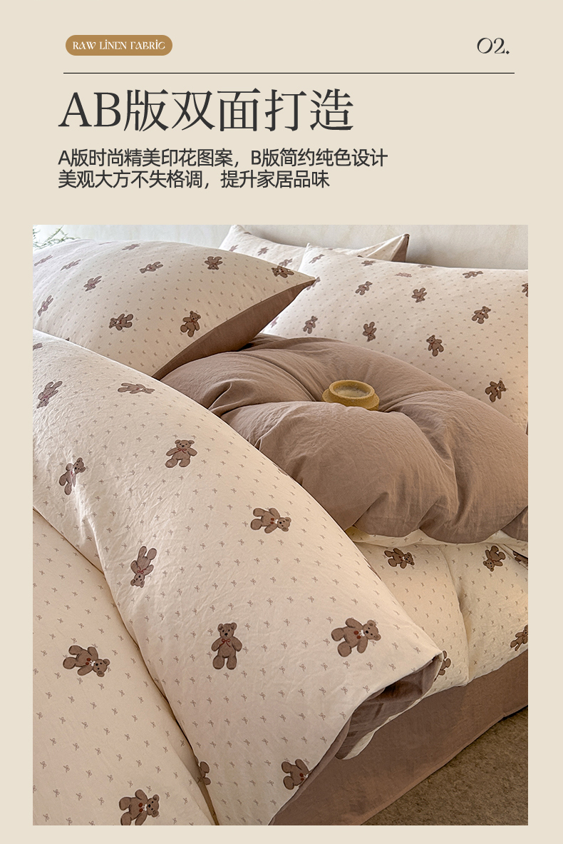 (总)如约 2025新款A类亲肤水洗原麻印花四件套,枫林晚,风木槿咖,慕雪红,锦瑟,迪奥咖,俏颜,可颂咖,可颂灰,风木槿紫,迪奥兰,可颂绿