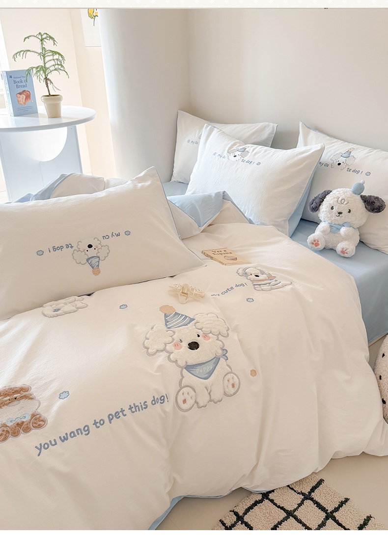 (总)优迈 2025新款全棉水洗棉贴布卡通四件套-泡芙狗狗