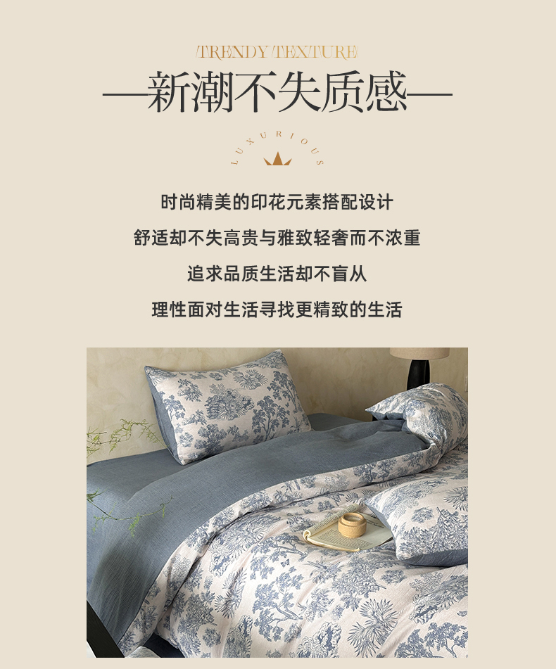 如约 2025新款A类亲肤水洗原麻印花四件套 迪奥兰