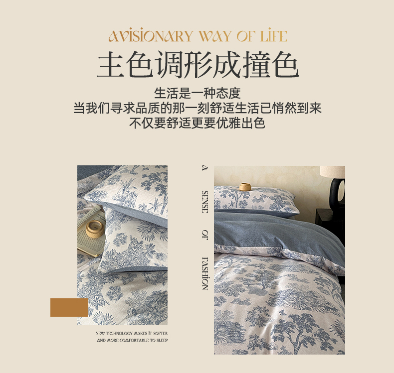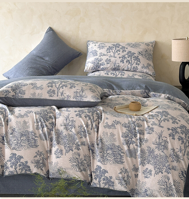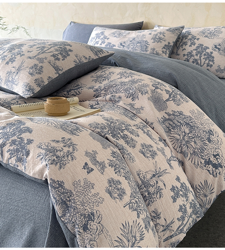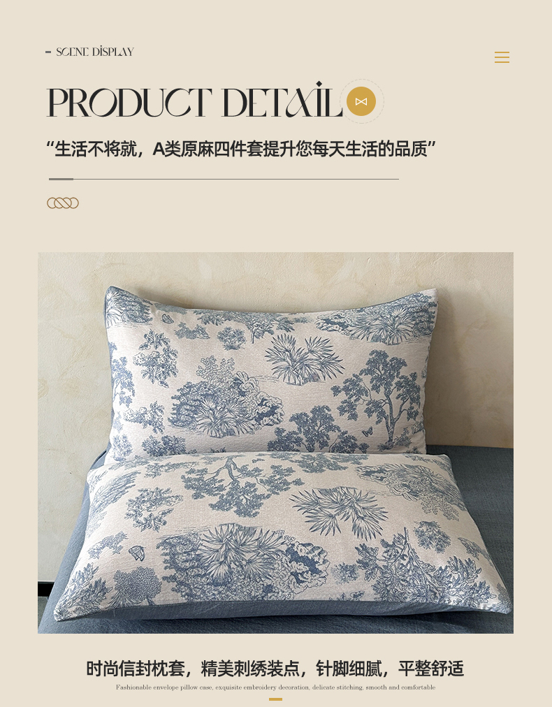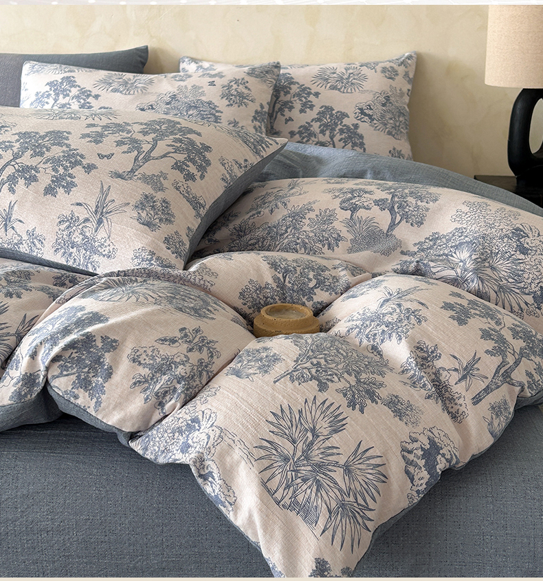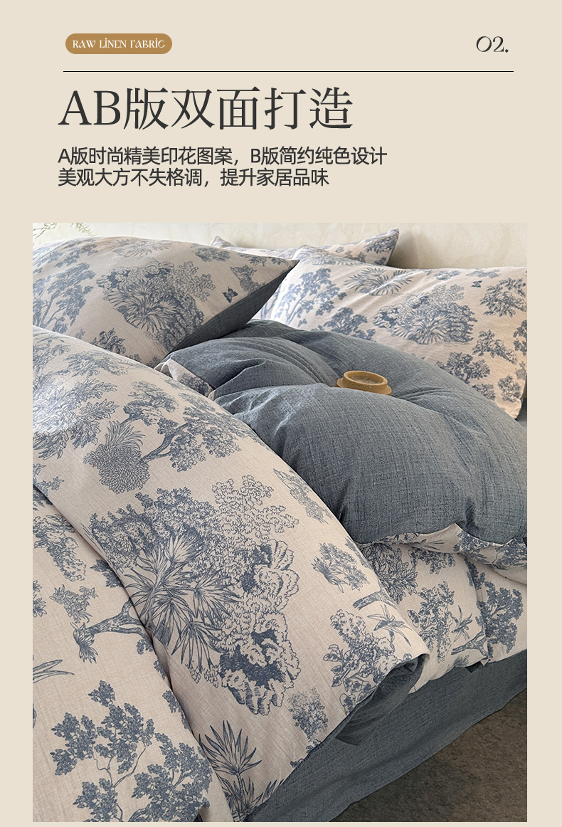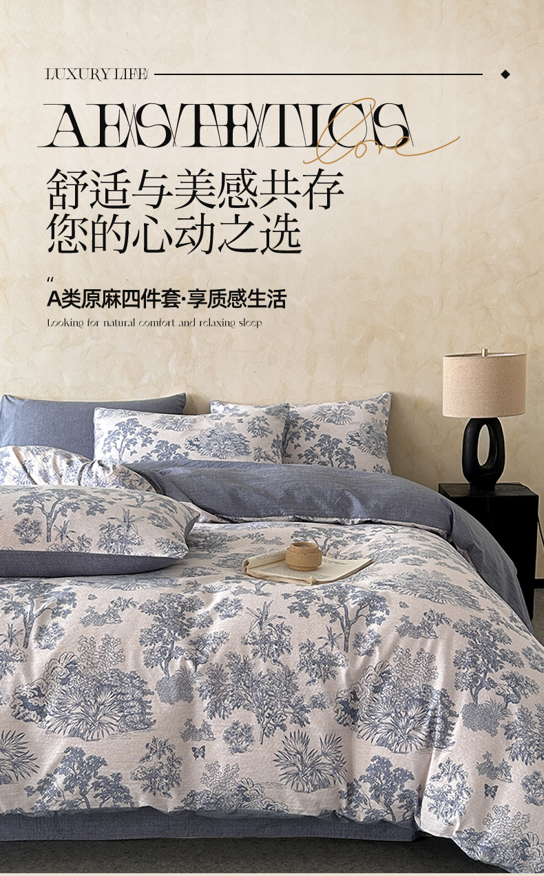 (总)如约 2025新款A类亲肤水洗原麻印花四件套,枫林晚,风木槿咖,慕雪红,锦瑟,迪奥咖,俏颜,可颂咖,可颂灰,风木槿紫,迪奥兰,可颂绿