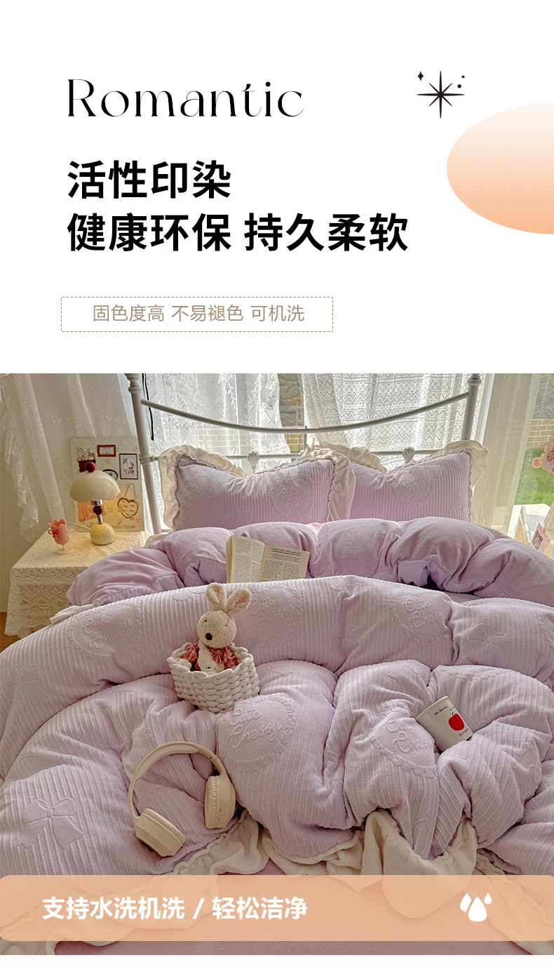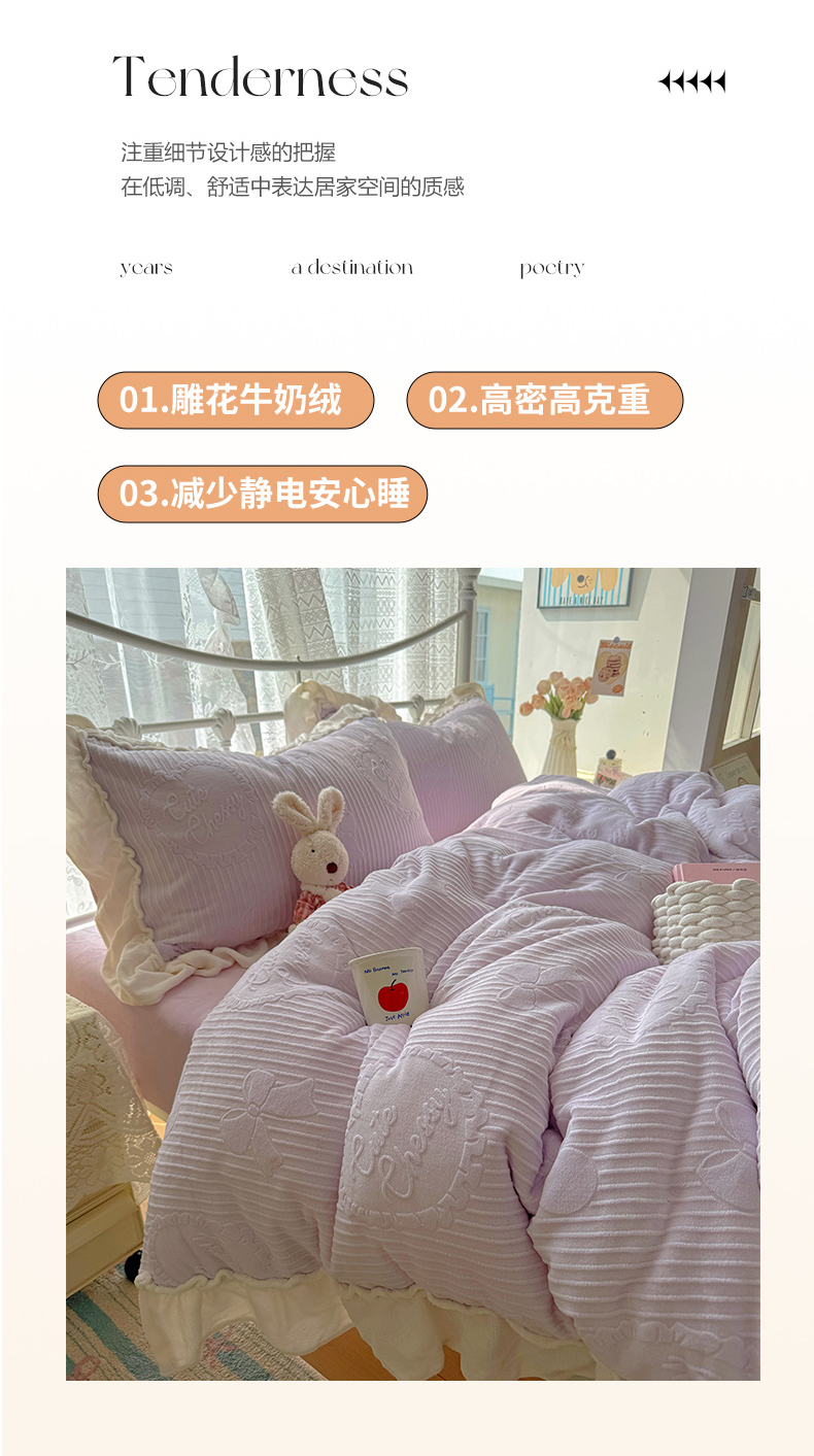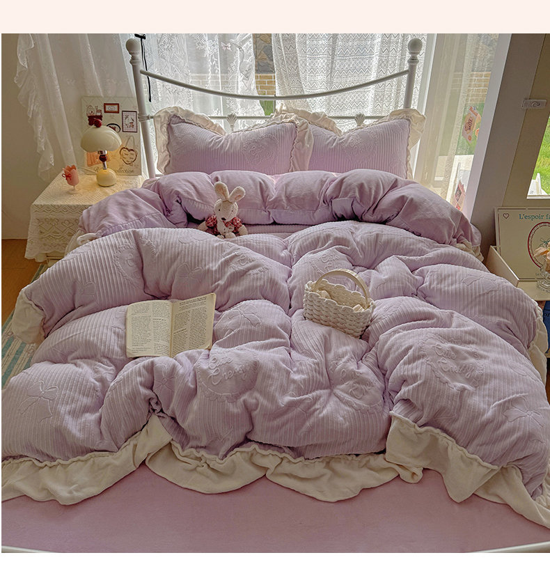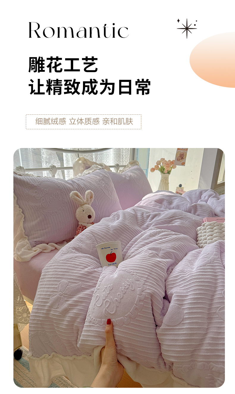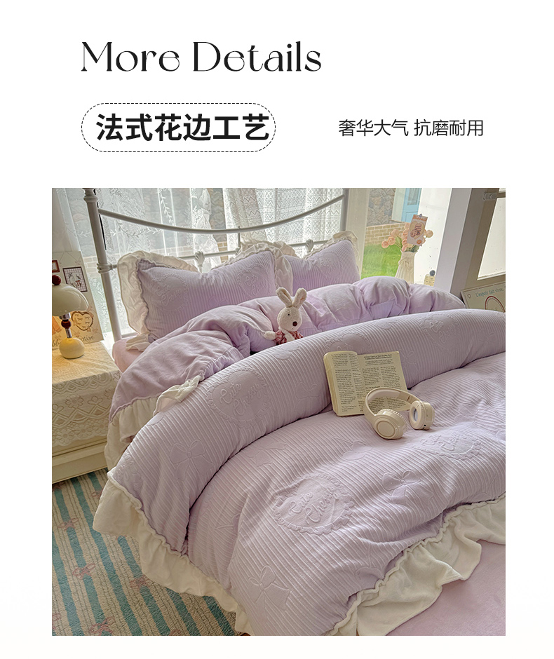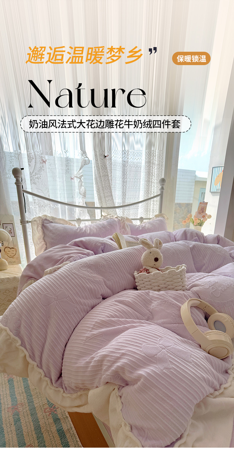 当前位置: 91家纺网 > 商品网购 > 床品套件 > 四件套 > 牛奶绒四件套 > 捌月 2025新款奶油风法式大花边雕花牛奶绒四件套 小确幸-绝绝紫