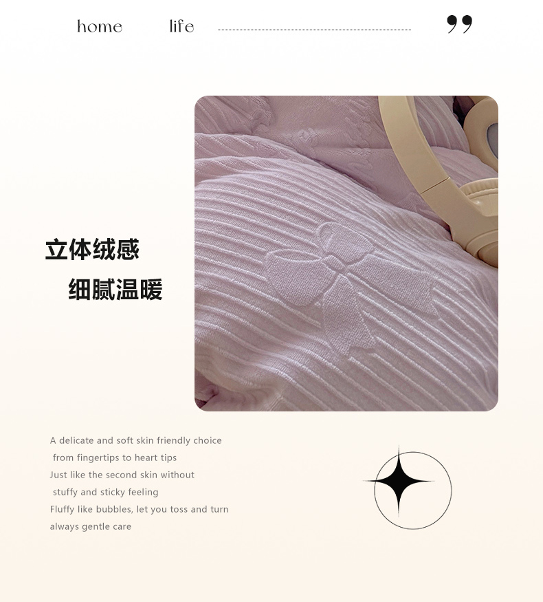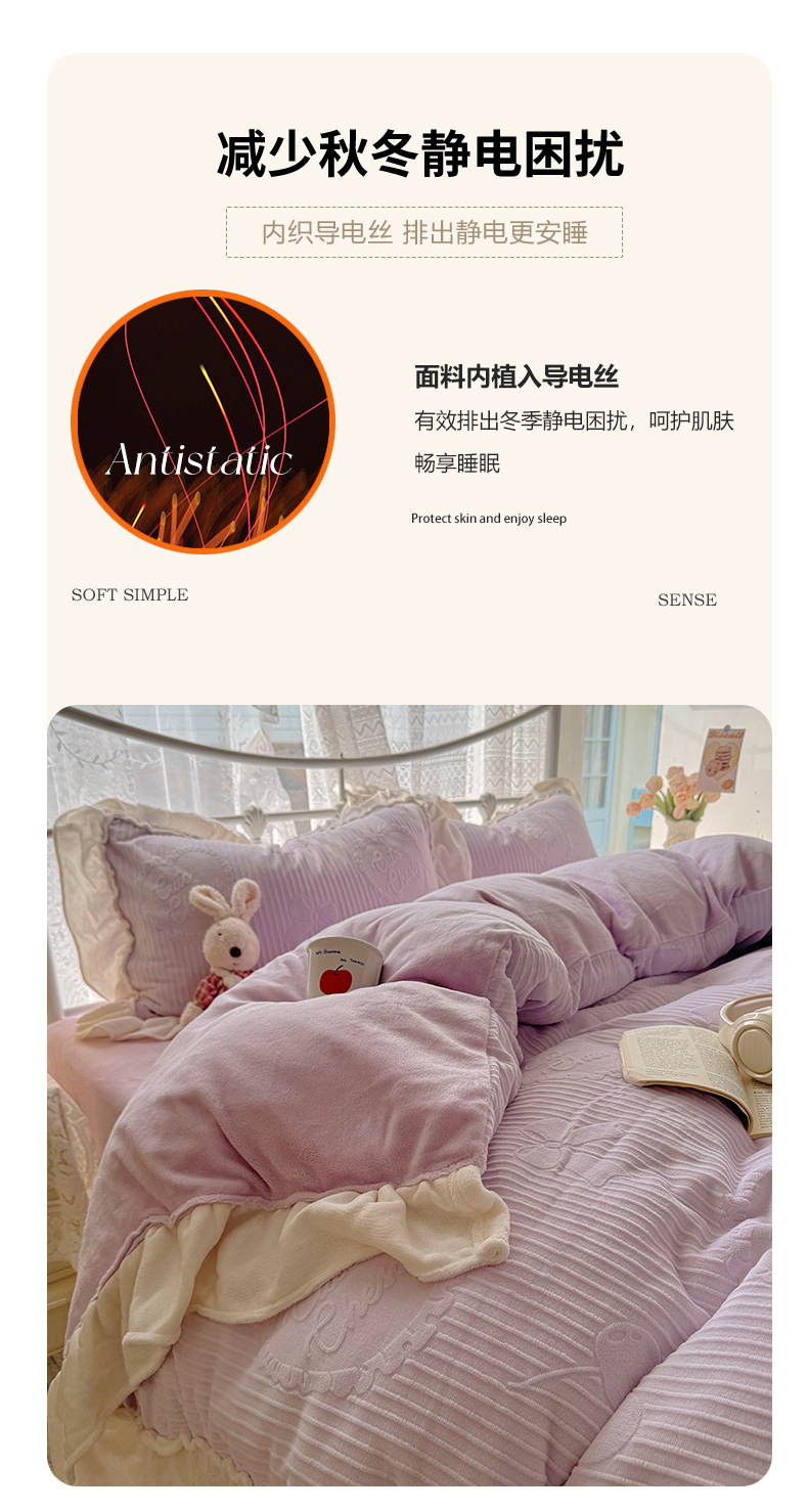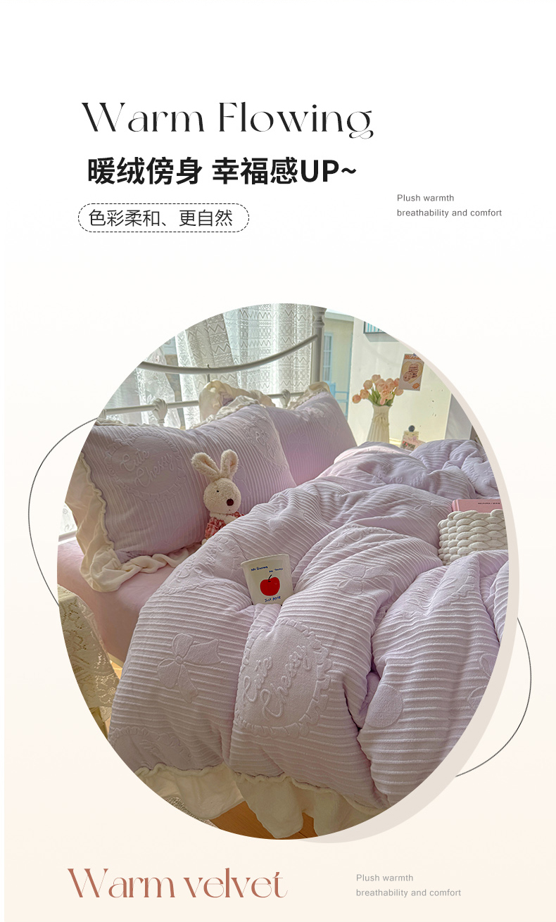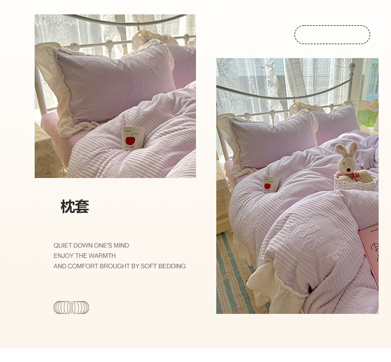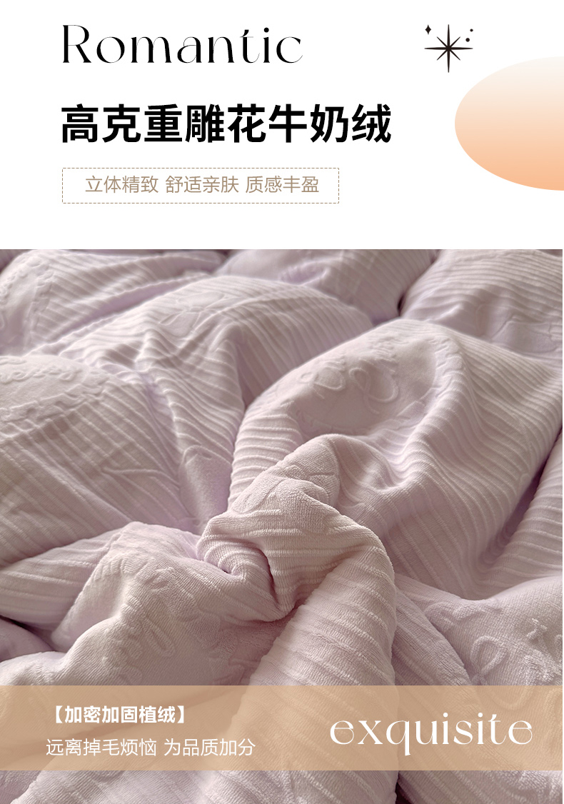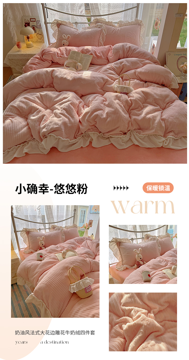 当前位置: 91家纺网 > 商品网购 > 床品套件 > 四件套 > 牛奶绒四件套 > 捌月 2025新款奶油风法式大花边雕花牛奶绒四件套 小确幸-绝绝紫