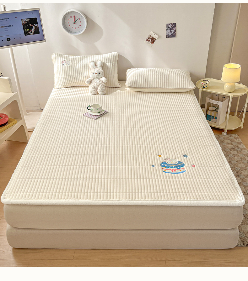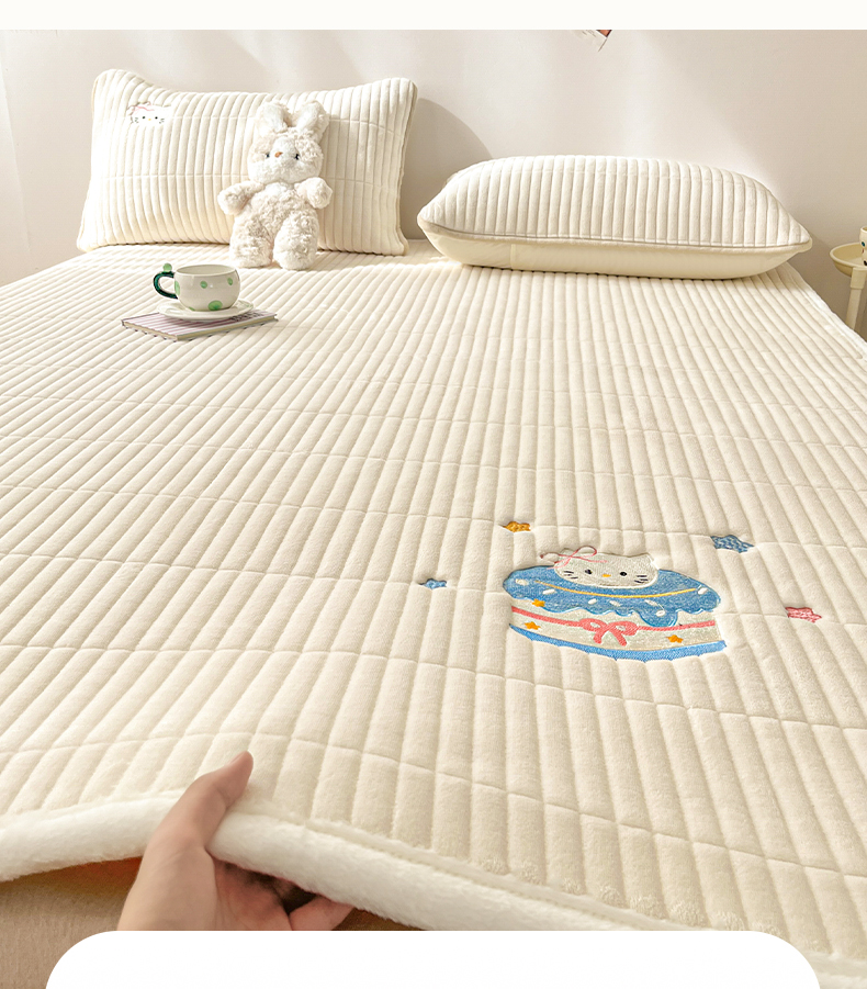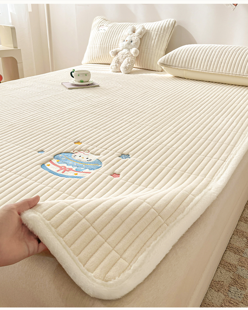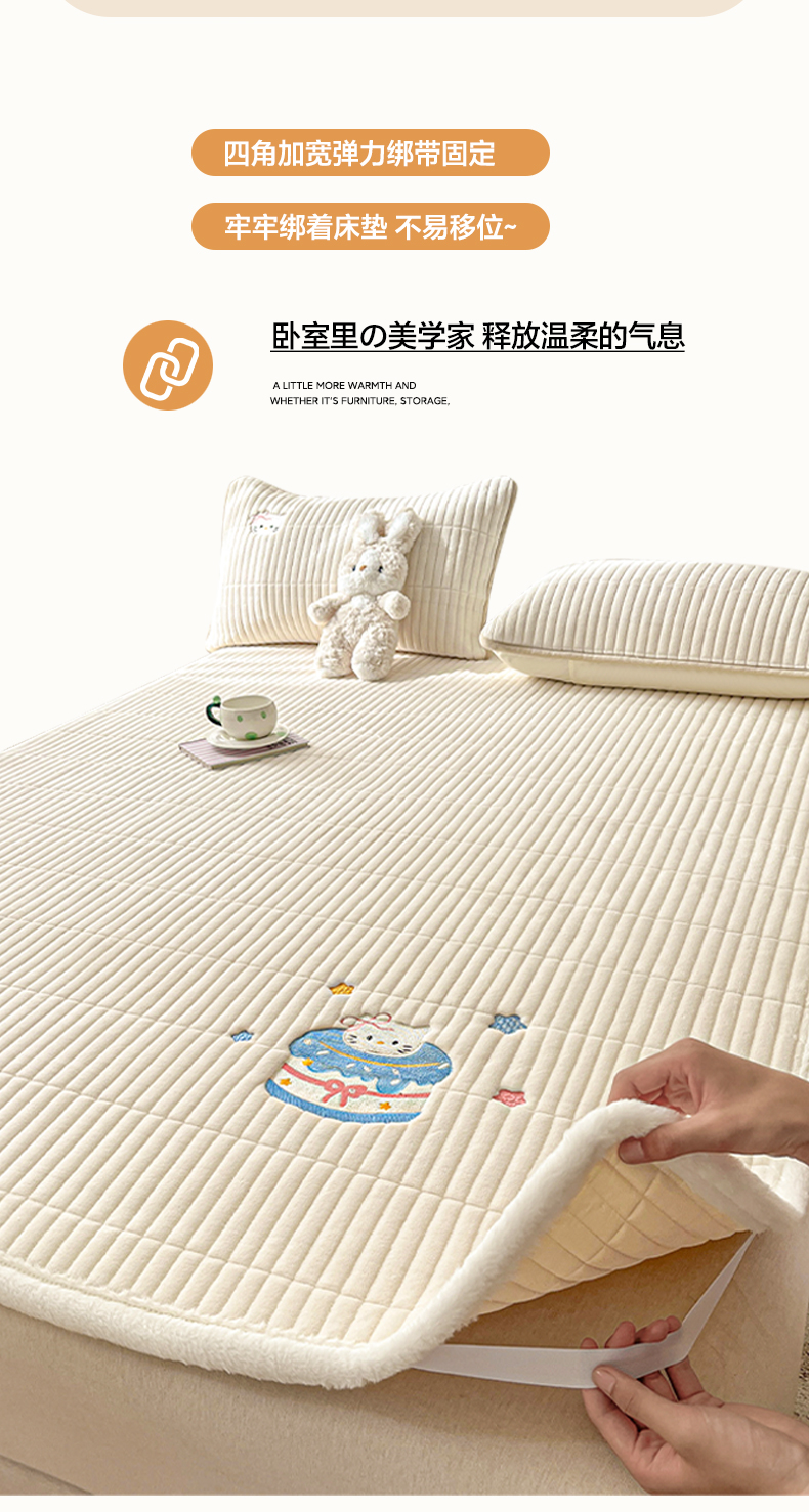 商品名称:(总)摩妮卡 2025新款加厚保暖牛奶绒夹棉绣花床垫三件套