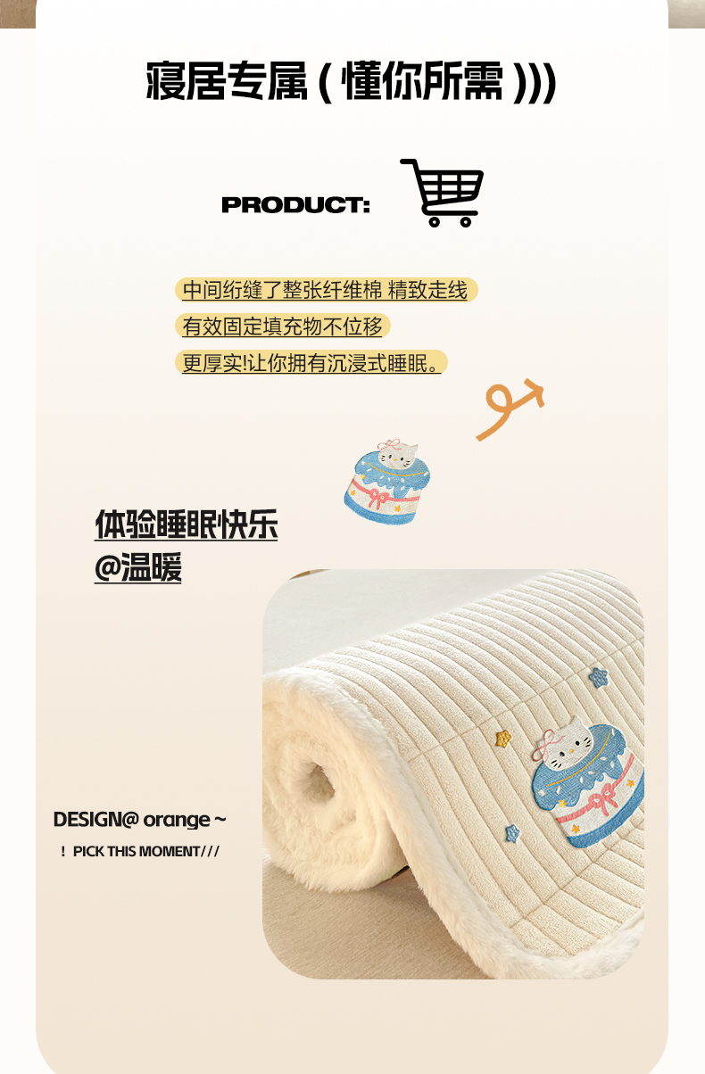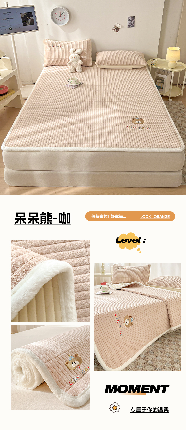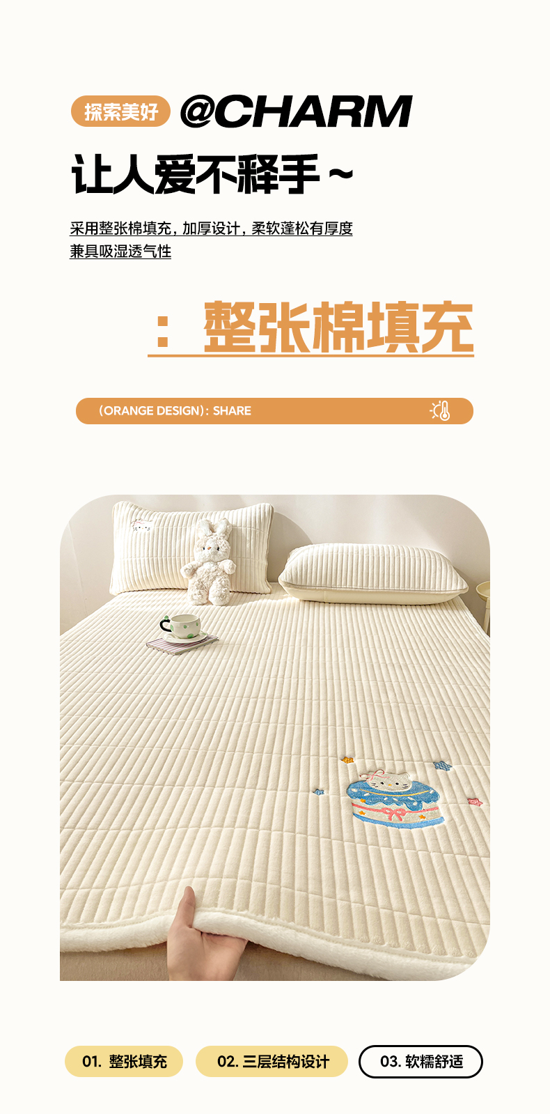 商品名称:(总)摩妮卡 2025新款加厚保暖牛奶绒夹棉绣花床垫三件套