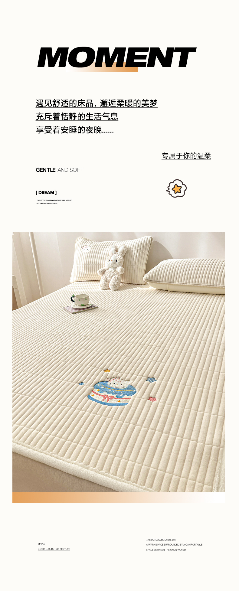 (总)摩妮卡 2025新款牛奶绒贴布绣绒床笠保护床垫三件套,采花的小兔,免兔的日常,内向的小兔,盛日庆祝,甜点魔法师,星星餐点