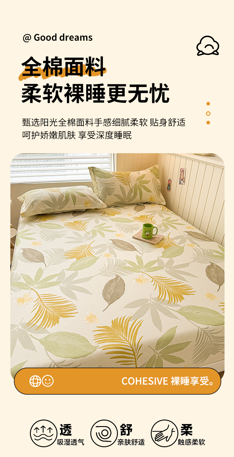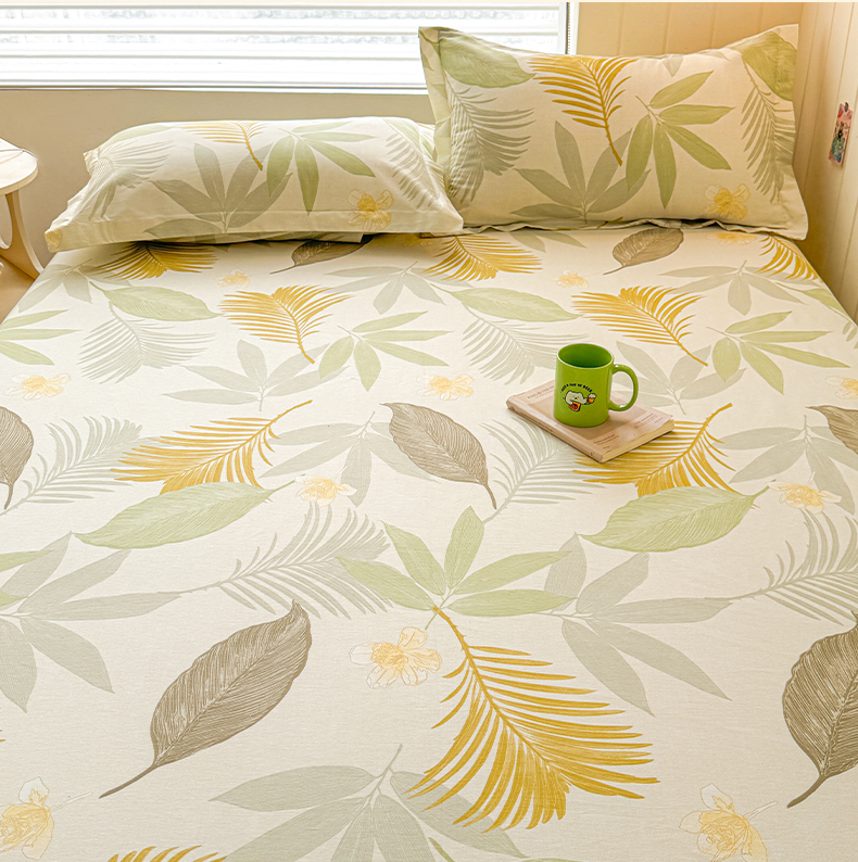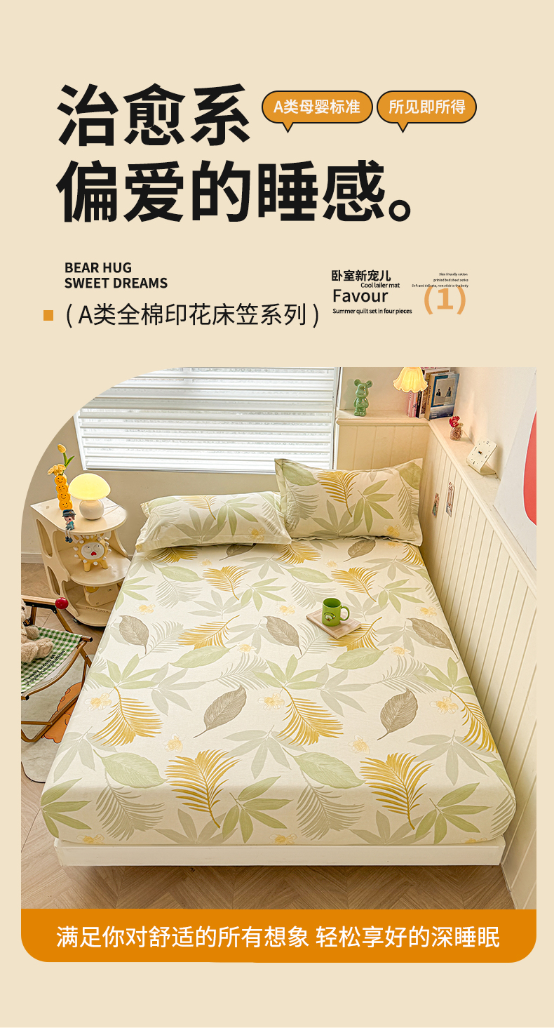 名优家纺 2025新款A类全棉印花床笠 枫叶