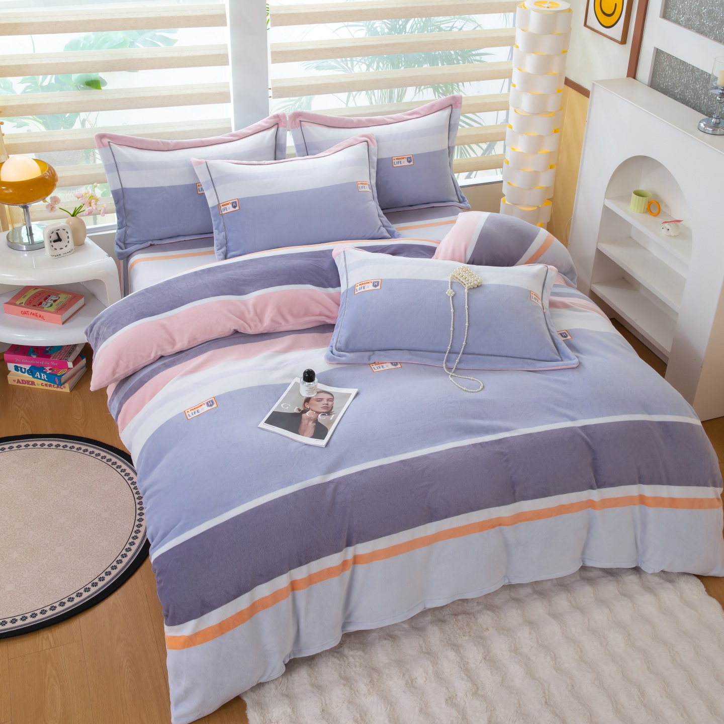 商品名称:卡迪亚家纺 2025新款金雕绒系列四件套 月亮弯弯