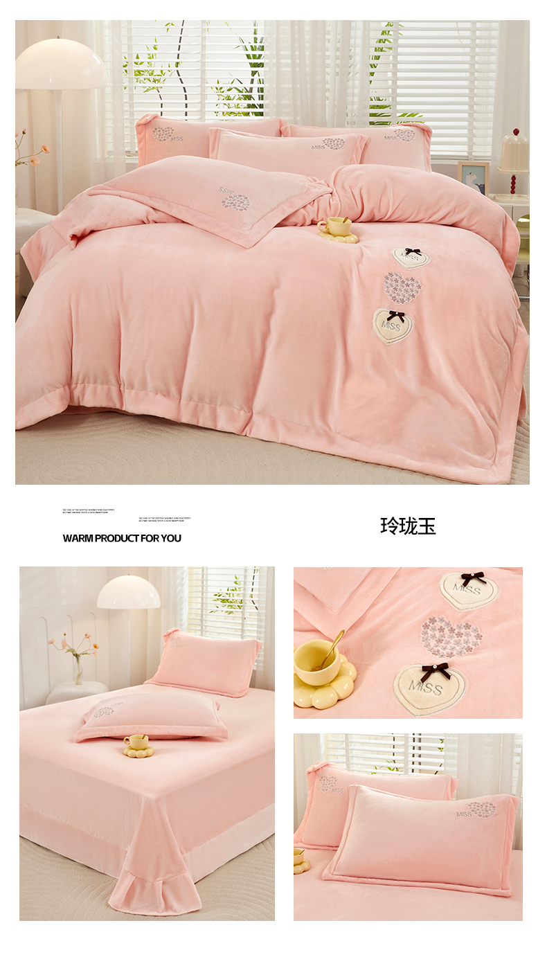 (总)卡迪亚家纺 2025新款婴儿绒高端绣花四件套-郁金香,郁金香-豆沙红,郁金香-梦幻紫,郁金香-抹茶绿,郁金香-奶茶咖,郁金香-樱花粉