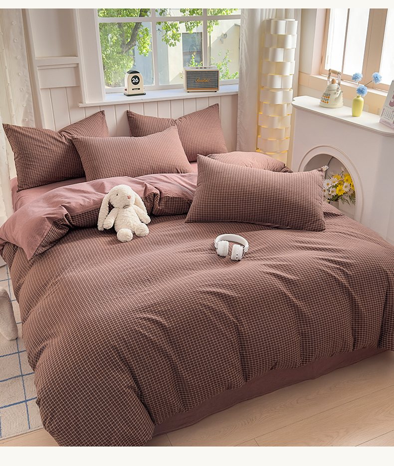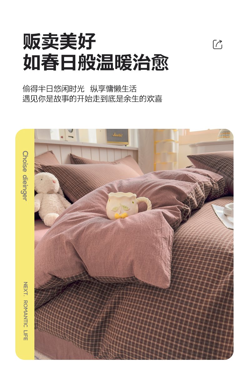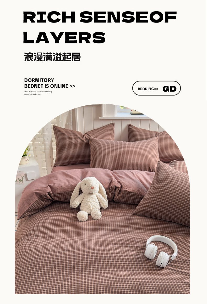 当前位置: 91家纺网 > 商品网购 > 床品套件 > 四件套 > 全棉普通四件套 > 宜家坊 2025新款A类全棉色织水洗棉四件套纯棉格子纯色被套学生宿舍三件套定制定做 沐风-焦糖