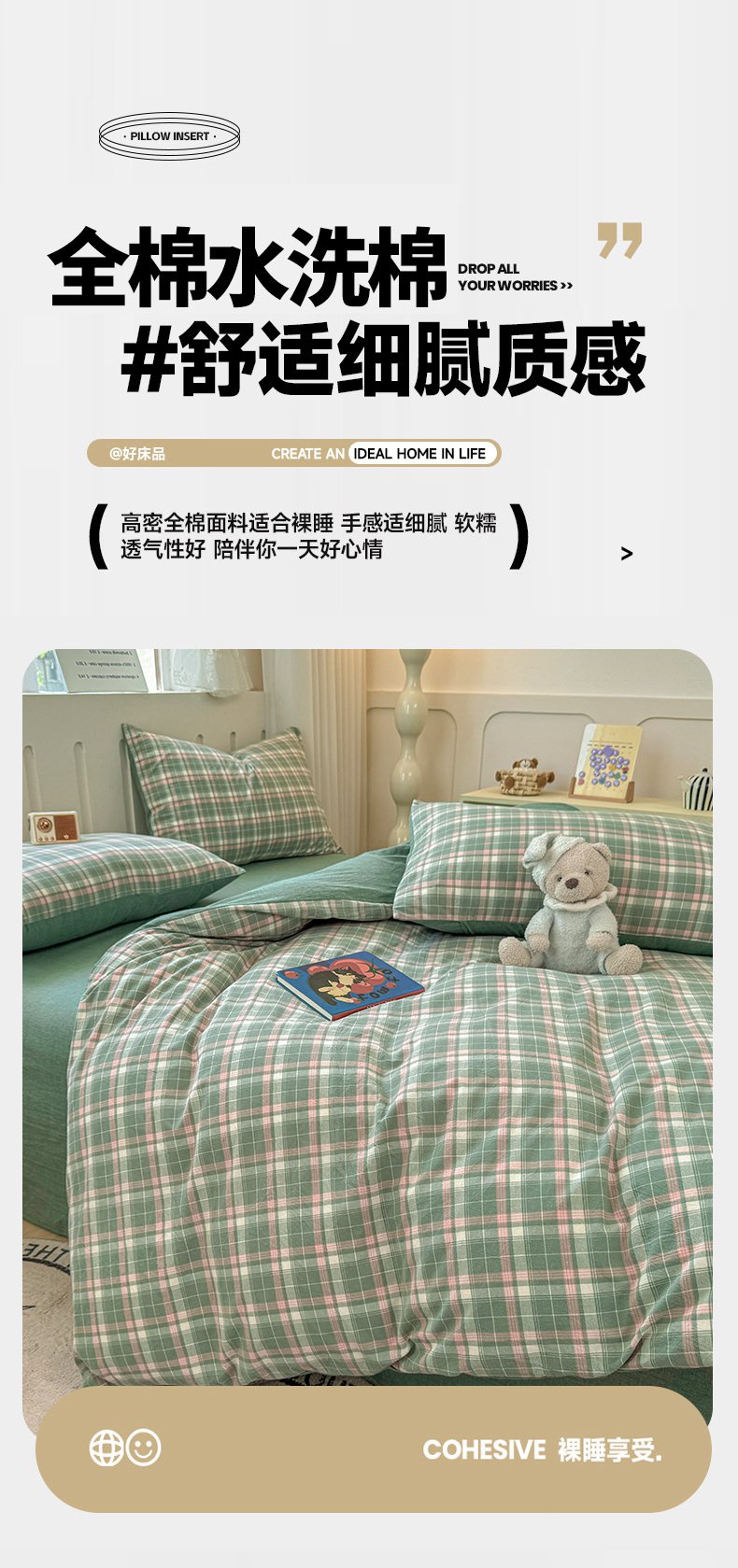 当前位置: 91家纺网 > 商品网购 > 床品套件 > 四件套 > 全棉普通四件套 > 宜家坊 2025新款A类全棉色织水洗棉四件套纯棉格子纯色被套学生宿舍三件套定制定做 映像格-绿