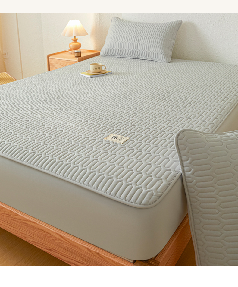 曼陀罗 2025新款A类新疆棉花夹棉防水床笠 小竹纹-浅灰