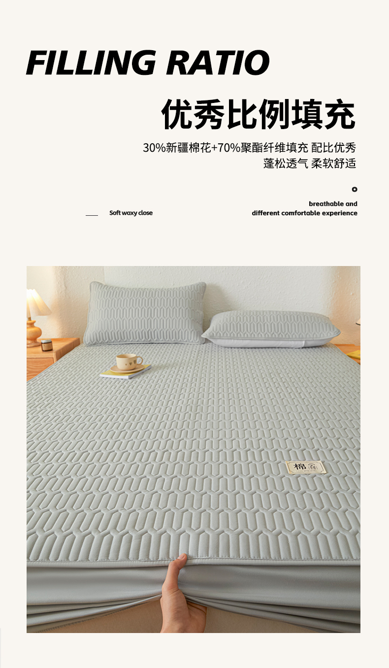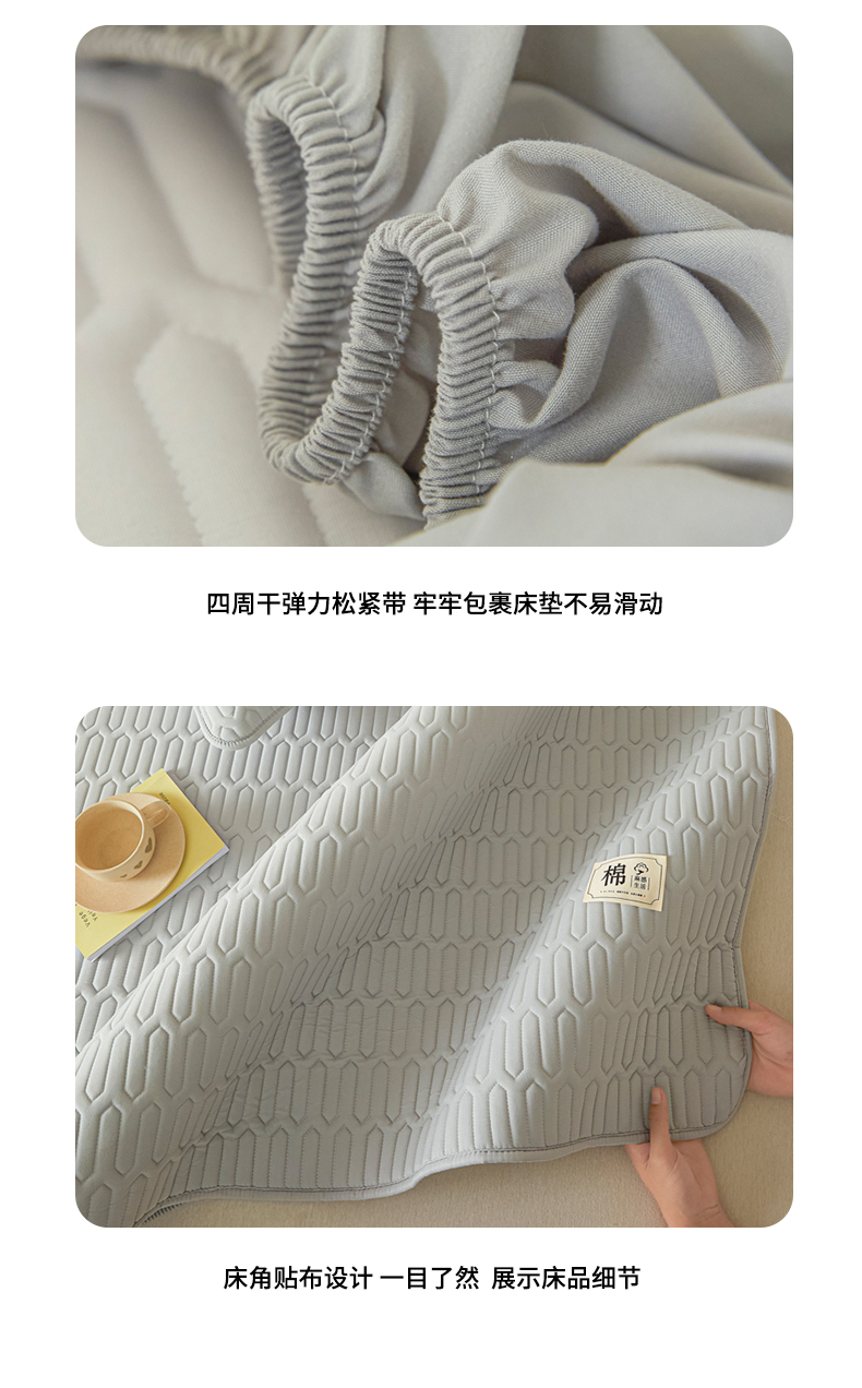 商品名称:曼陀罗 2025新款A类新疆棉花夹棉防水床笠 小竹纹-浅灰