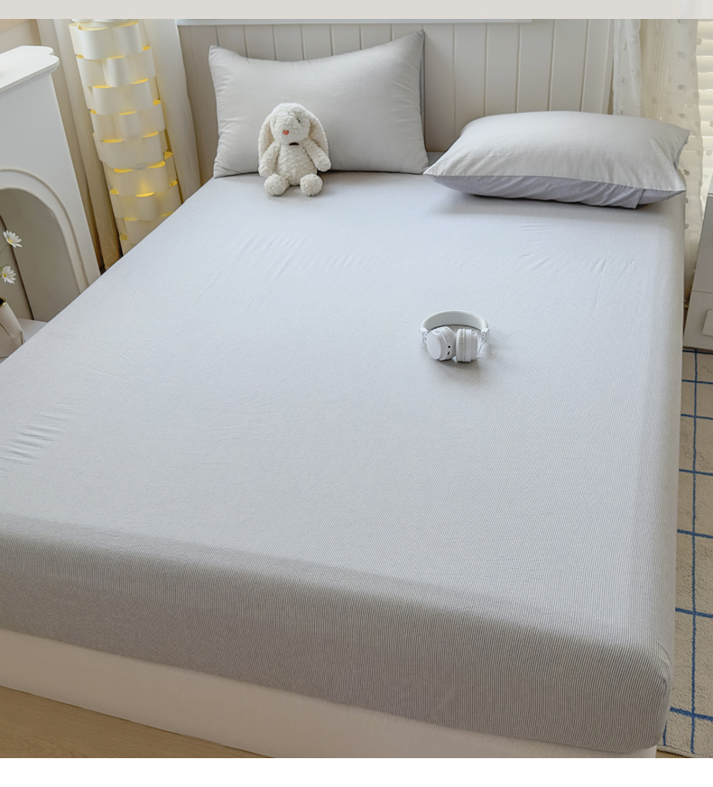 • 91家纺网 家纺一手货源 找家纺 宜家坊 2025新款A类色织全棉水洗棉床笠单件纯棉格子纯色学生宿舍定制定做 纯色-浅蓝