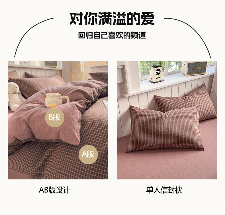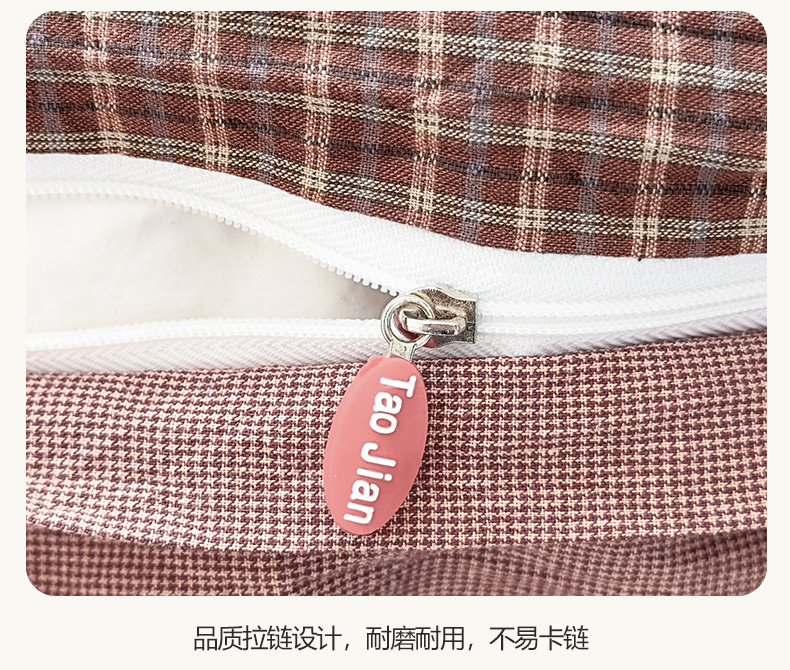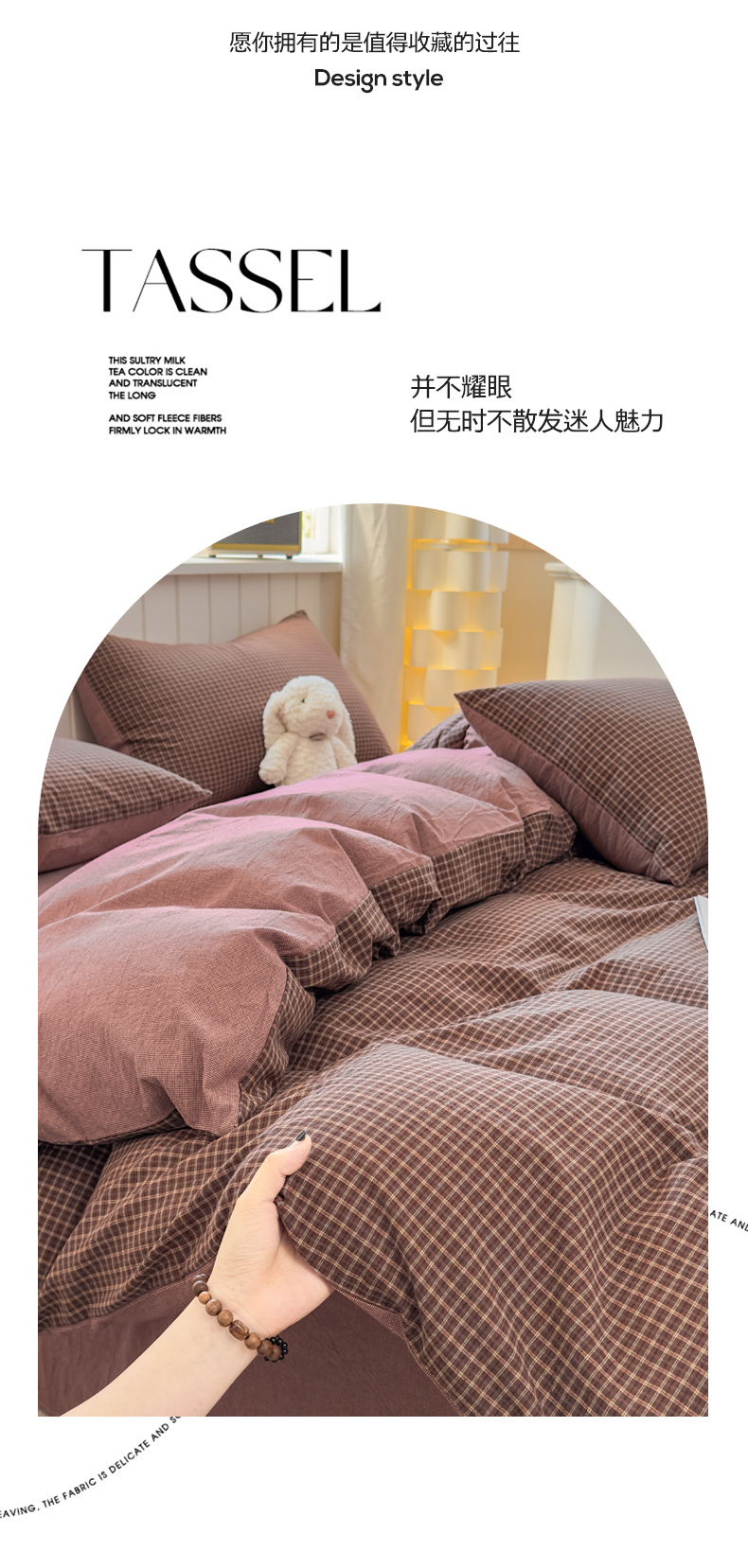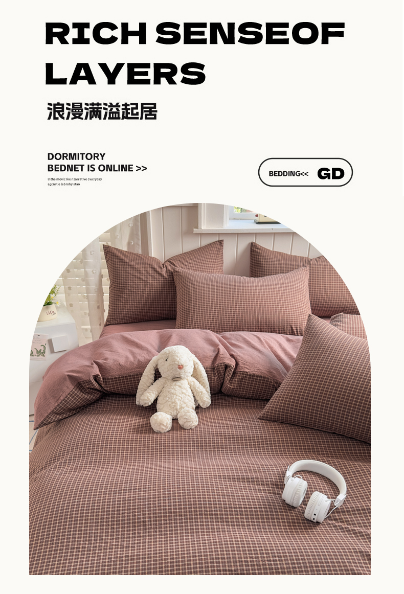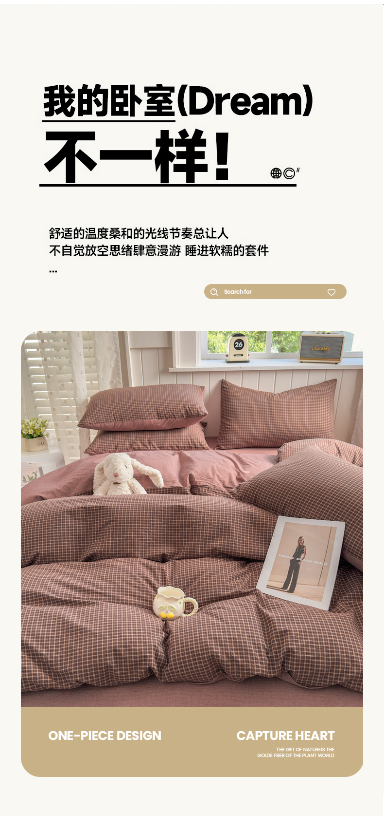 • 91家纺网 家纺一手货源 找家纺 宜家坊 2025新款A类全棉色织水洗棉被套单件纯棉格子纯色学生宿舍被罩定制定做 沐风-焦糖
