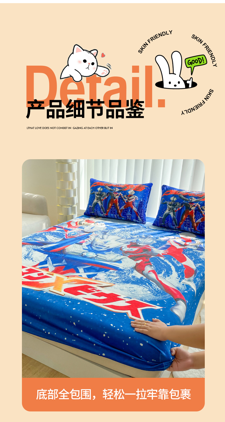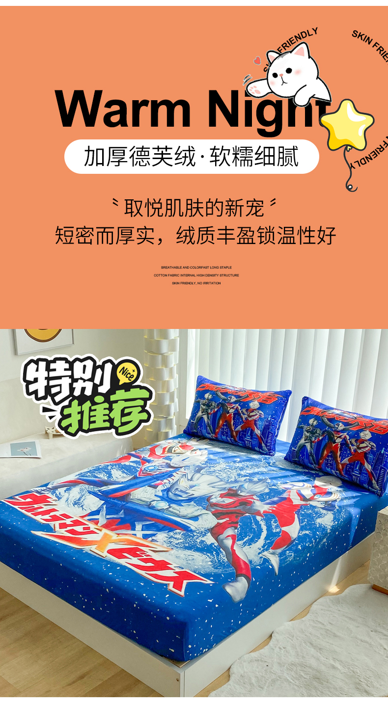 一电 2025新款跨境电商床笠冬天德芙绒床笠单件加绒加厚绒床罩儿童学生宿舍床垫套床笠罩-系列二 奥特警卫队