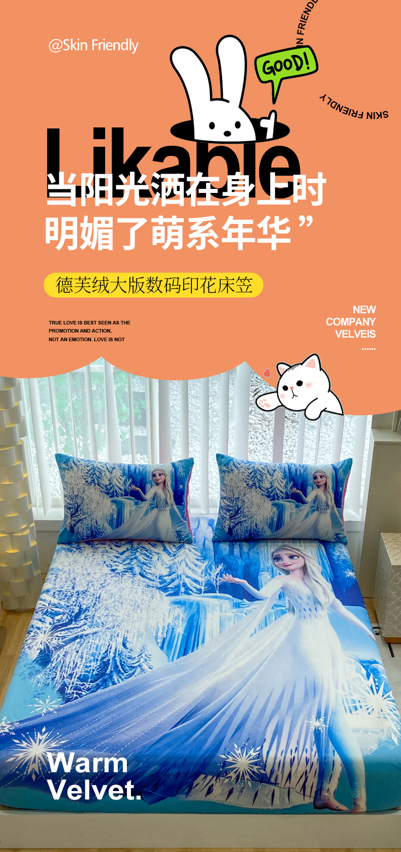 一电 2025新款跨境电商床笠冬天德芙绒床笠单件加绒加厚绒床罩儿童学生宿舍床垫套床笠罩 皇后