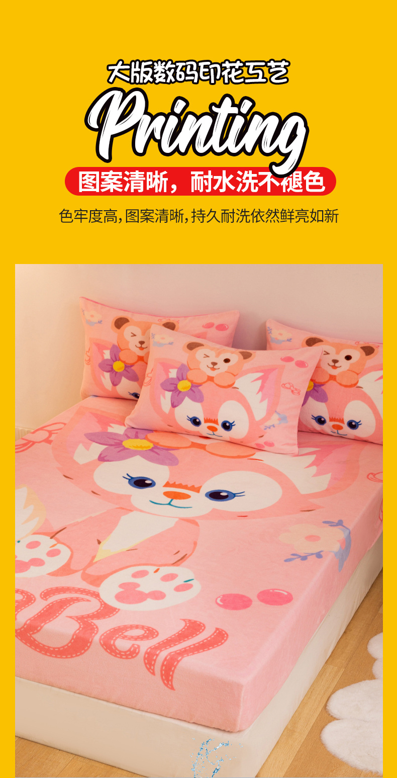 • 91家纺网 家纺一手货源 找家纺 一电 外贸2025新款卡通珊瑚绒床笠单件床罩冬季加厚牛奶绒床垫保护罩全包床单套 贝贝熊