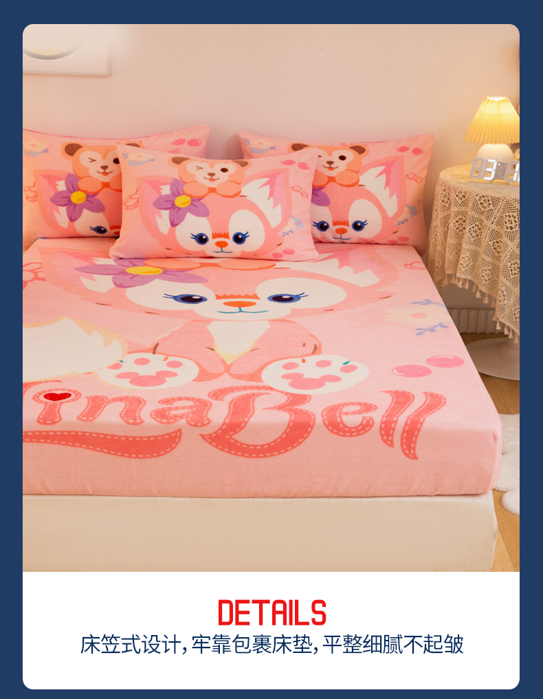 一电 外贸2025新款卡通珊瑚绒床笠单件床罩冬季加厚牛奶绒床垫保护罩全包床单套 贝贝熊