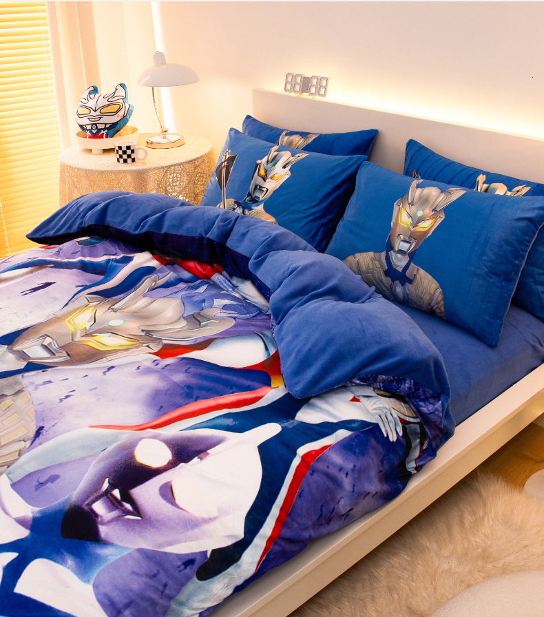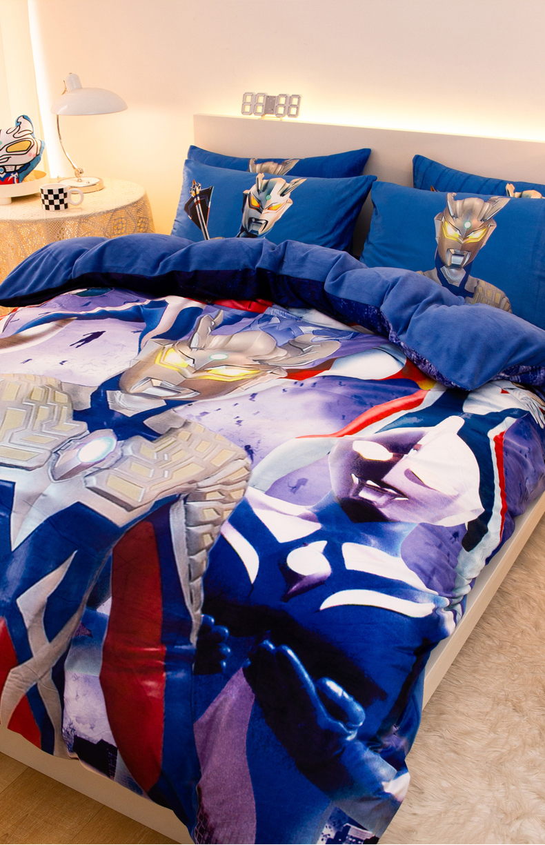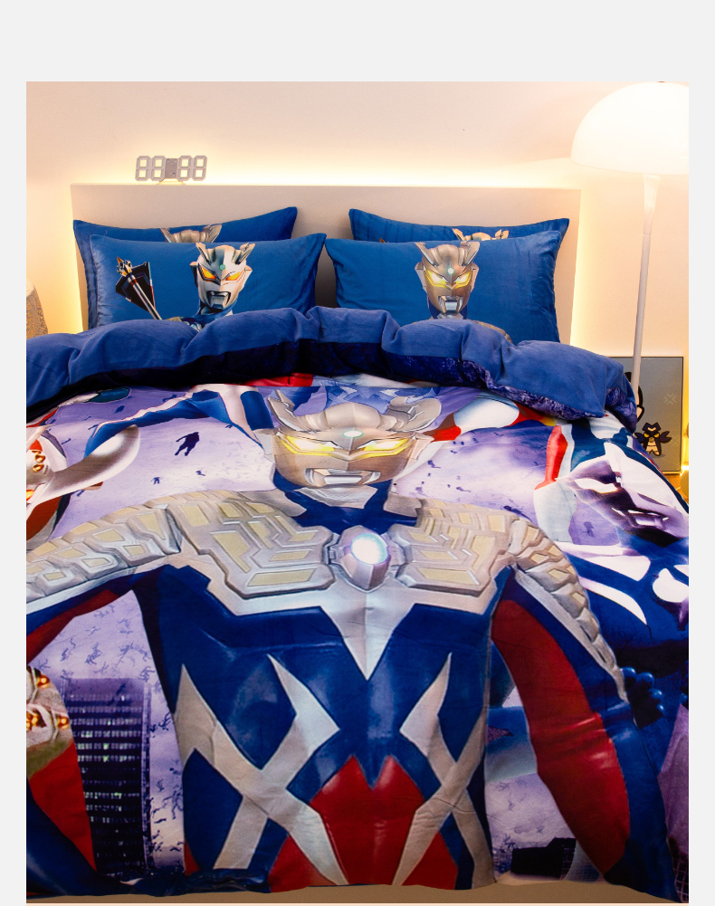 一电 2025外贸跨境电商儿童卡通床上四件套亲肤牛奶绒学生三件床单被套加大珊瑚宝宝卡通单被套2 奥特家族