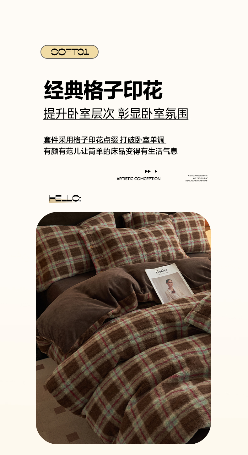 当前位置: 91家纺网 > 商品网购 > 床品套件 > 四件套 > 牛奶绒四件套 > 寐绸家纺 2025秋冬新款230g羊驼绒复古格牛奶绒四件套 慕池格
