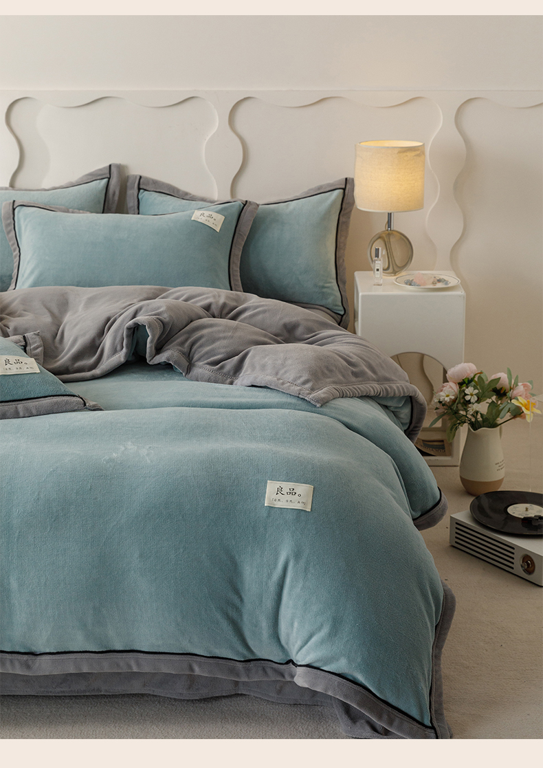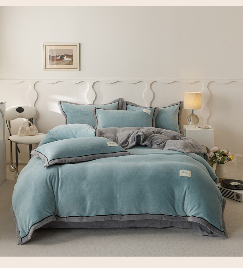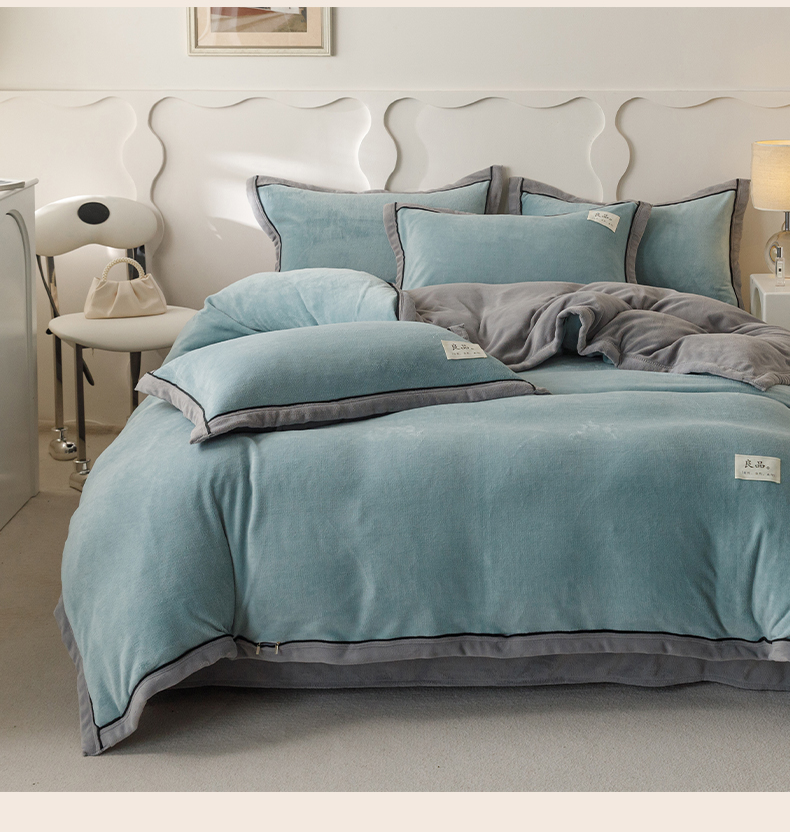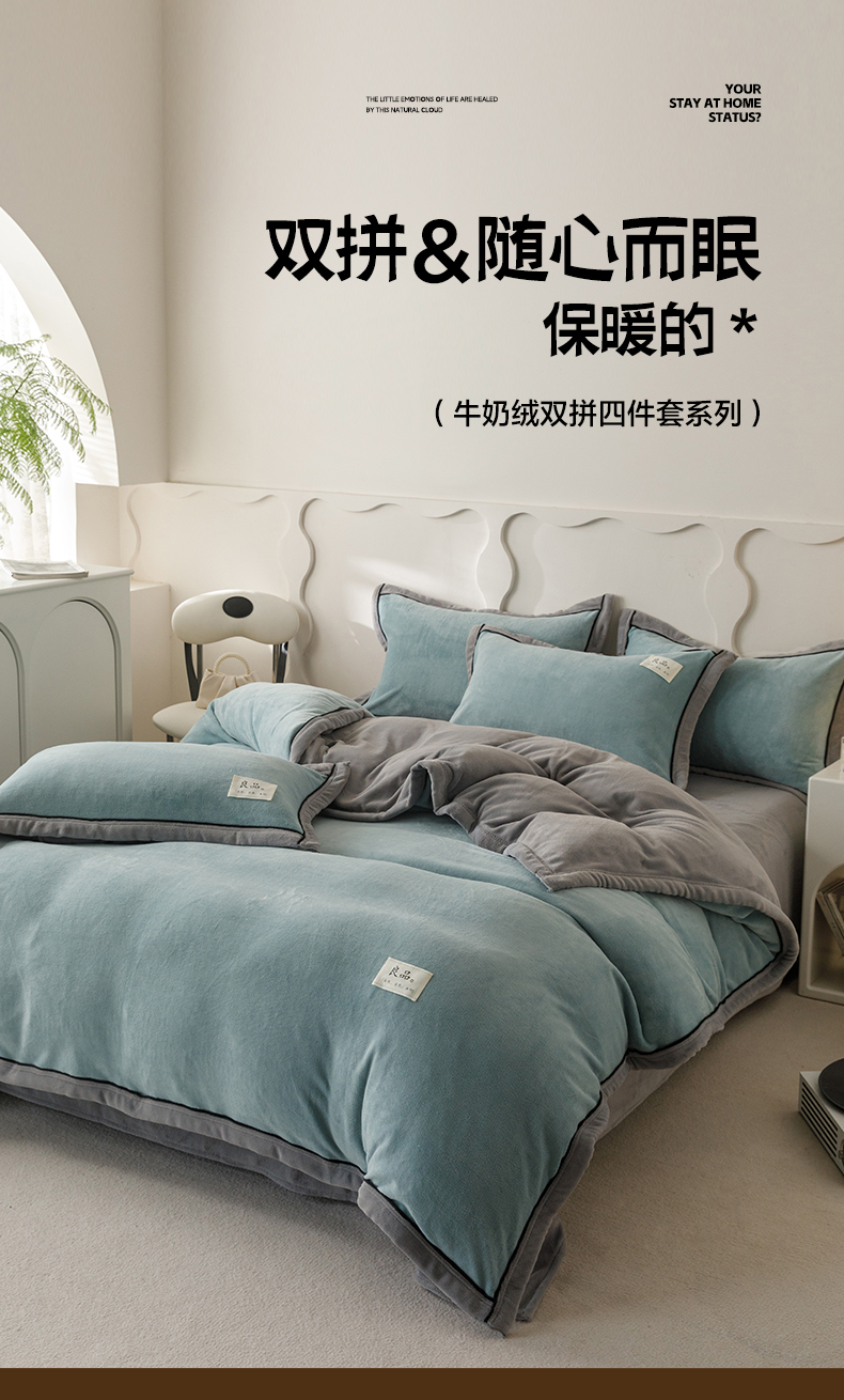 当前位置: 91家纺网 > 商品网购 > 床品套件 > 四件套 > 牛奶绒四件套 > 寐绸家纺 2025秋冬新款230g牛奶绒双拼四件套 双拼四件套-宾利蓝+浅灰