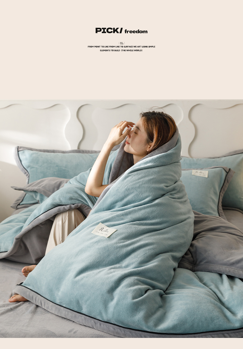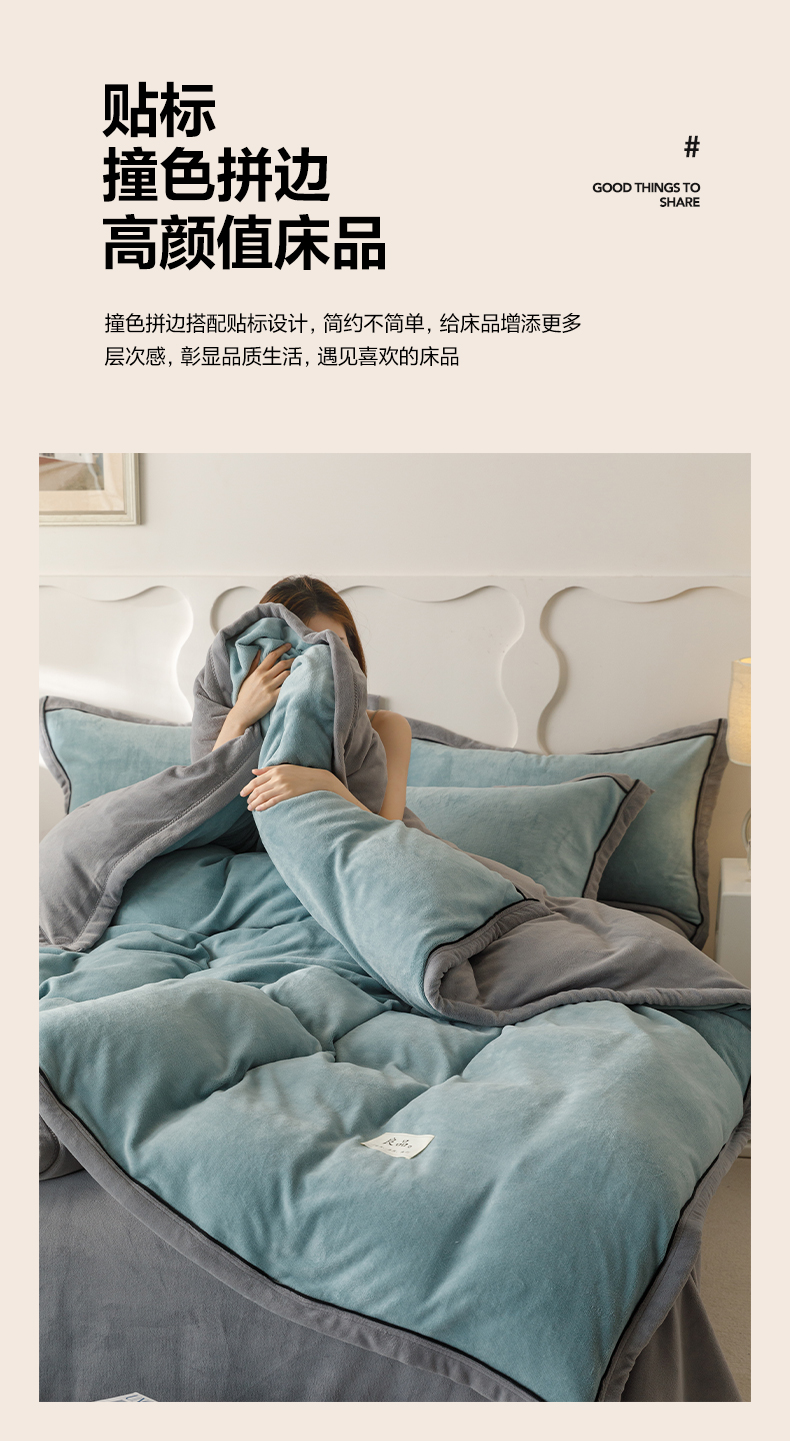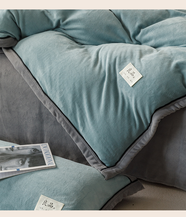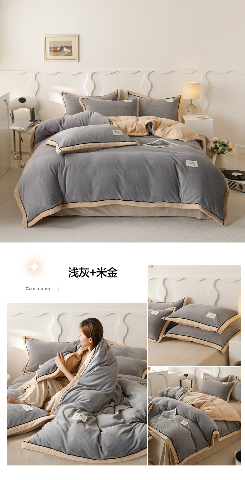 当前位置: 91家纺网 > 商品网购 > 床品套件 > 四件套 > 牛奶绒四件套 > 寐绸家纺 2025秋冬新款230g牛奶绒双拼四件套 双拼四件套-宾利蓝+浅灰