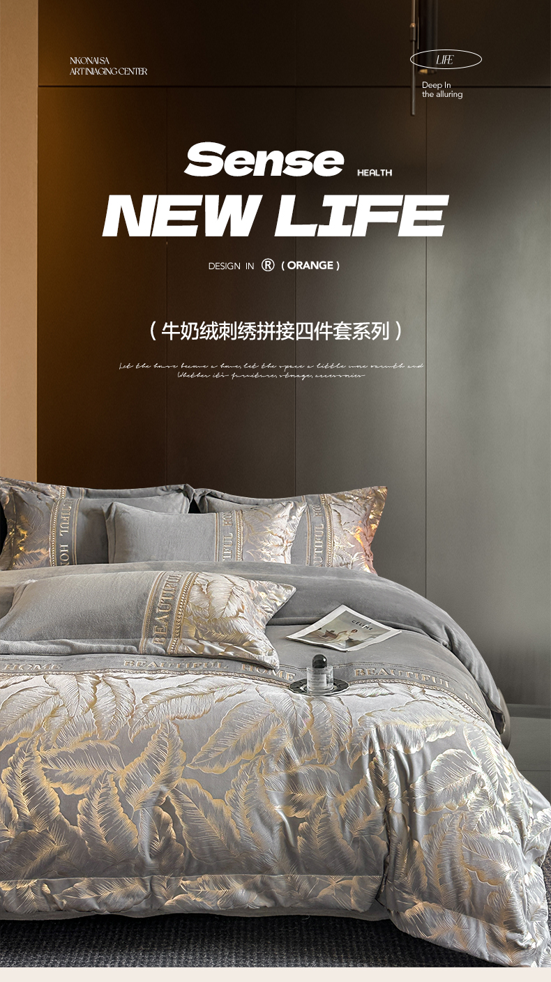 (总)女子家纺 2025新款牛奶绒拼接刺绣四件套-普罗旺斯
