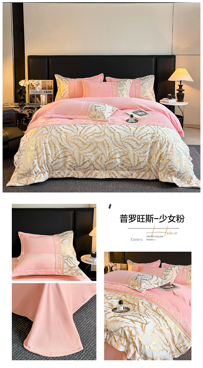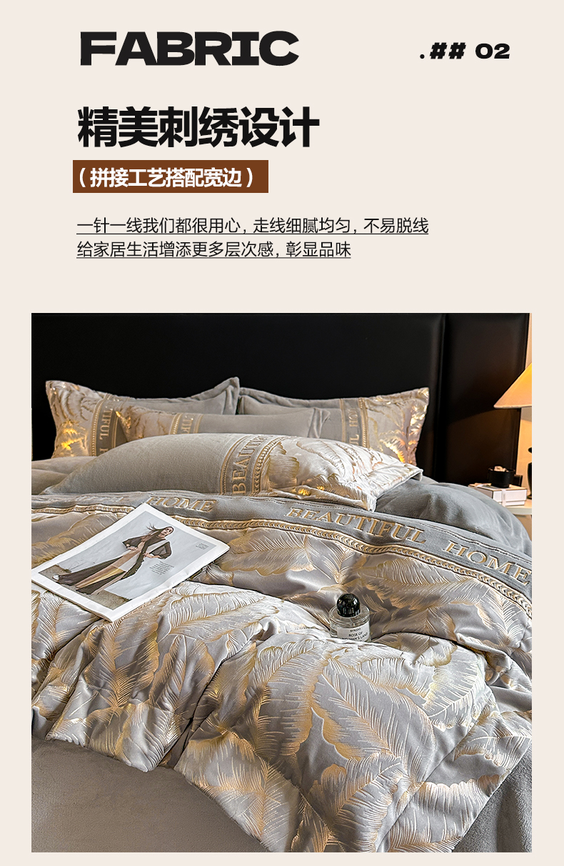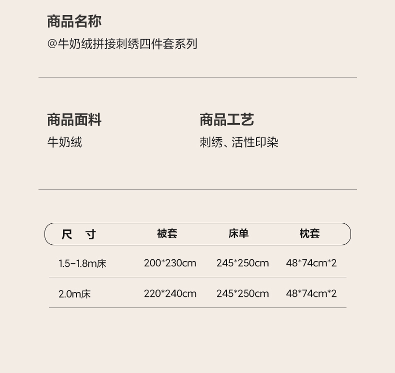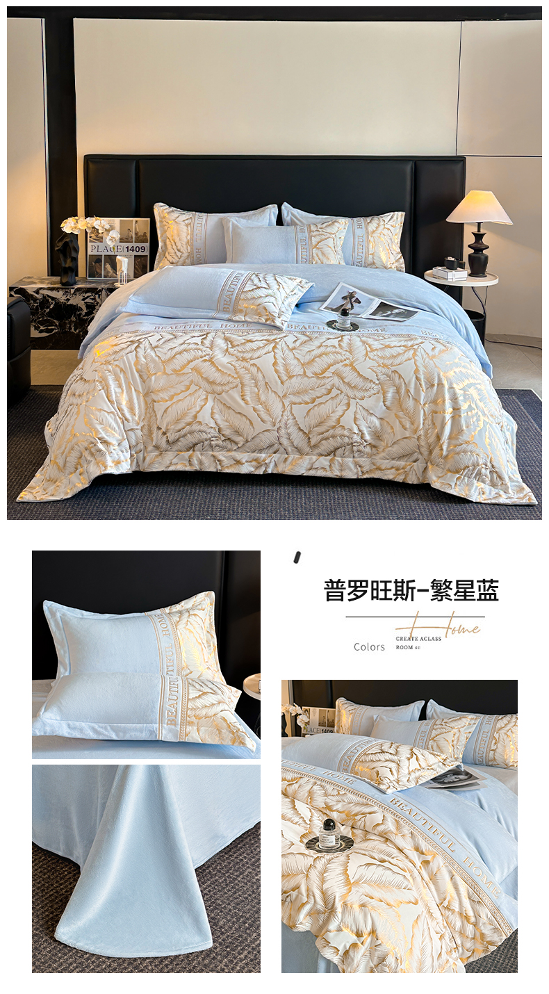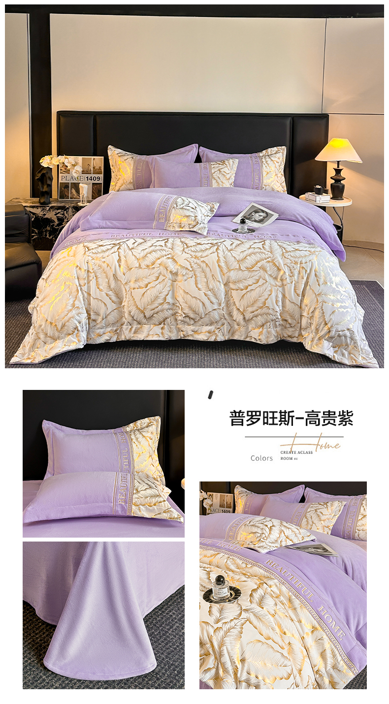 商品名称:(总)女子家纺 2025新款牛奶绒拼接刺绣四件套-普罗旺斯