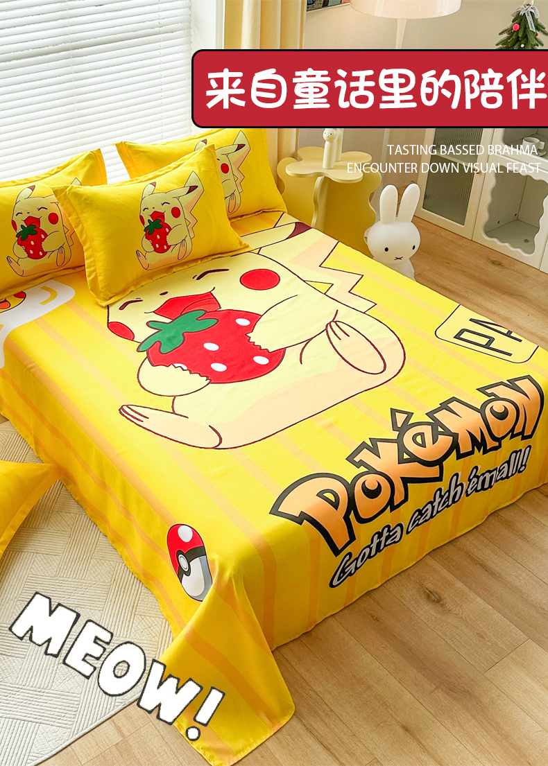 • 91家纺网 家纺一手货源 找家纺 一电 2025新款卡通床单单件被单学生宿舍被罩三件套单人儿童上下床床单-第一批 草莓皮卡丘