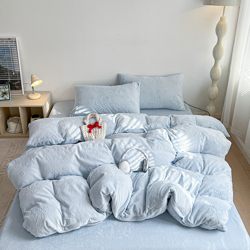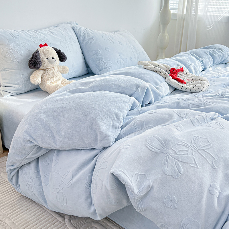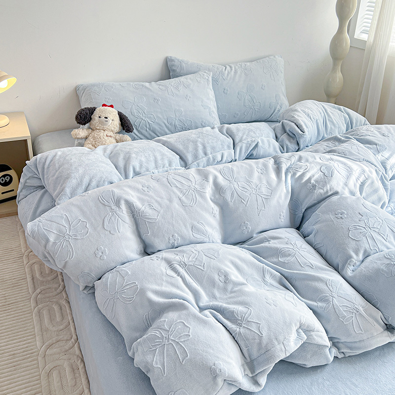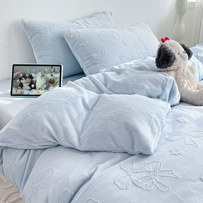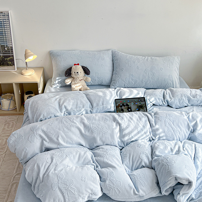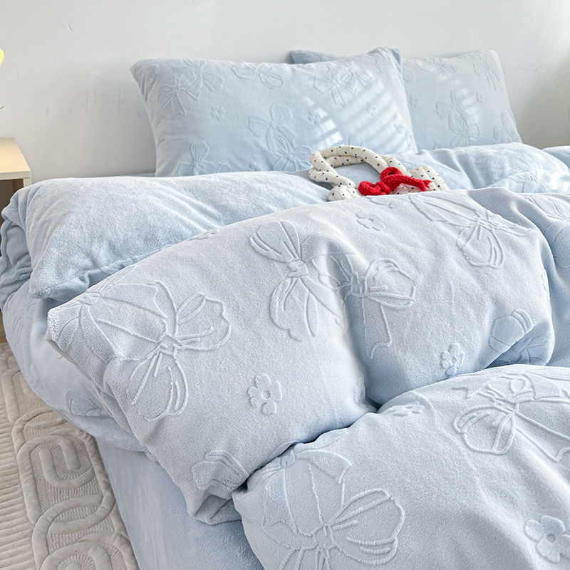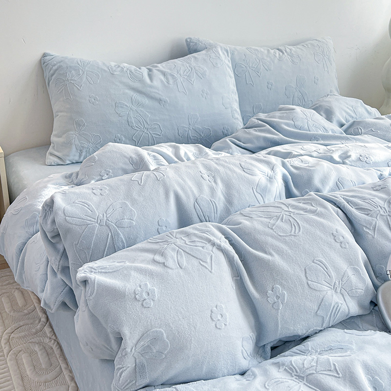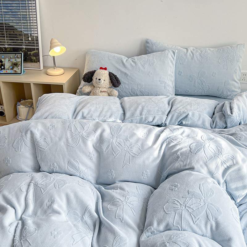 当前位置: 91家纺网 > 商品网购 > 床品套件 > 四件套 > 牛奶绒四件套 > 耀悦家纺 2025新款INS博主风蝴蝶伴侣立体A类全消光雕花牛奶绒四件套 蝴蝶结伴侣-浅蓝