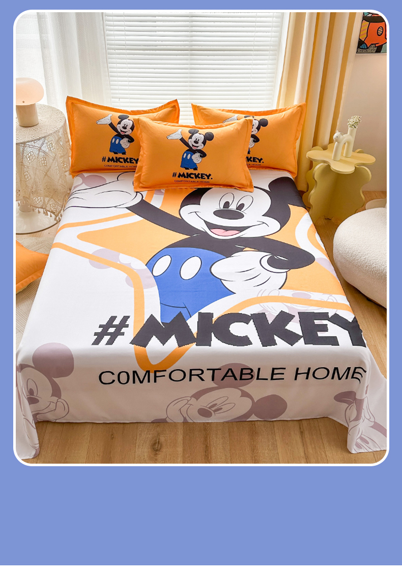 • 91家纺网 家纺一手货源 找家纺 一电 2025新款卡通床单单件被单学生宿舍被罩三件套单人儿童上下床床单-第三批 米奇