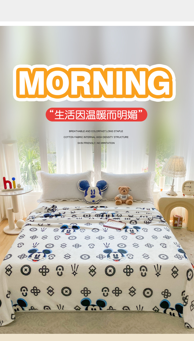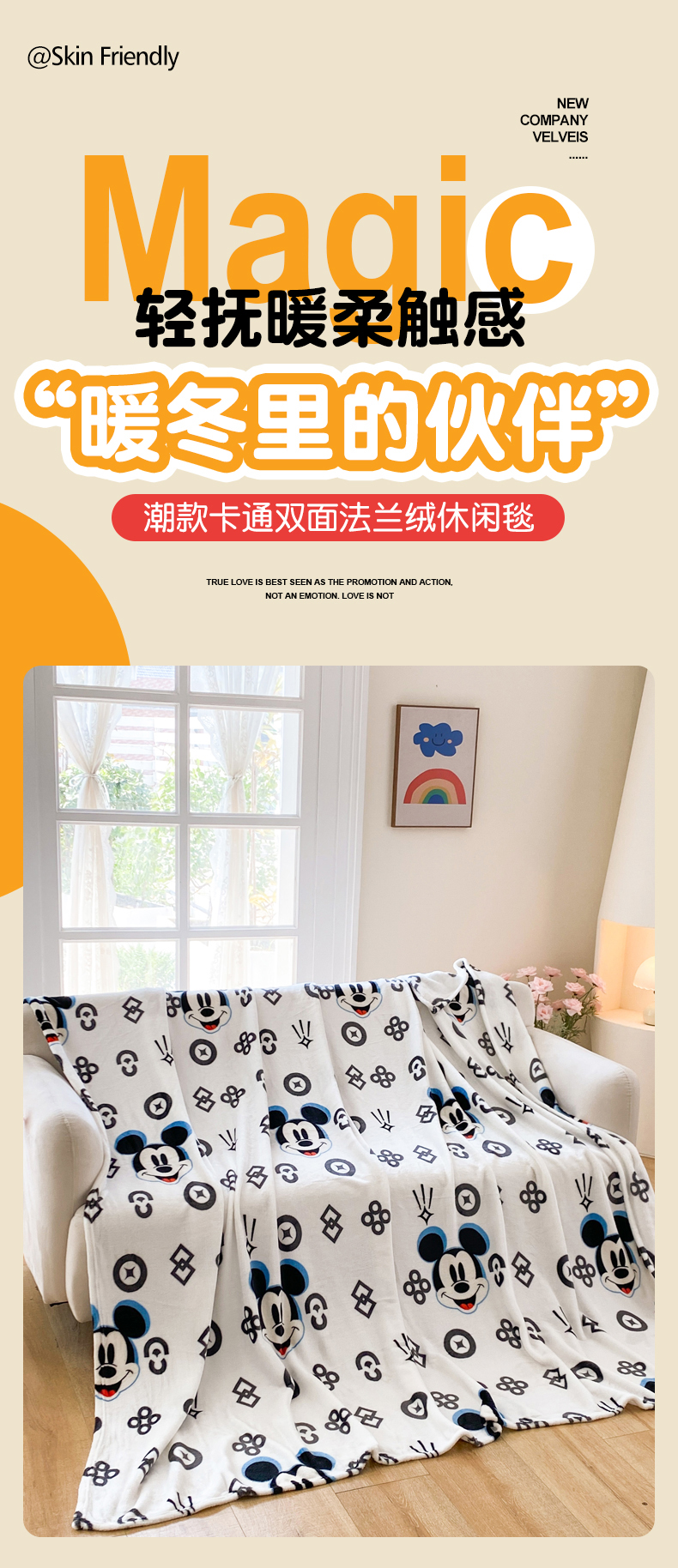 一电 2025新款卡通高克重双面法莱绒毛毯四季盖毯 米鼠时尚标