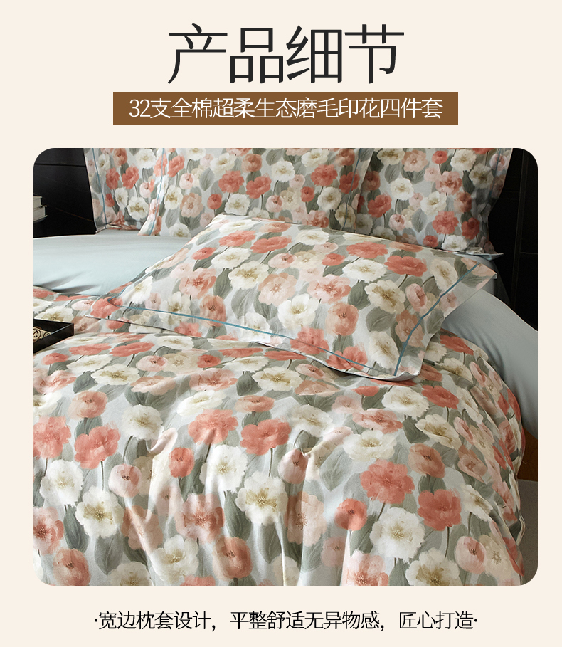 (总)品乐家纺 2025新款32支超柔生态磨毛四件套,川屿-咖,春意,朵唯-桔,朵唯-绿,花棠-粉,景秋-红,兰序-桔,兰茵-蓝,拾光-灰,桃汐-粉,桃汐-桔,小萌兔-绿,忆甜-米紫,郁郁幽兰-紫,鸢香-红,芷柔-粉