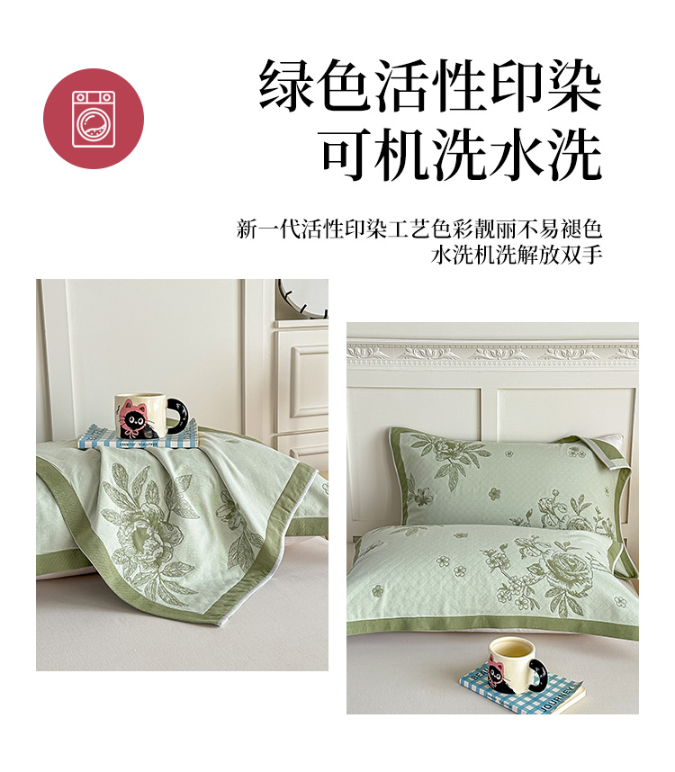 • 91家纺网 家纺一手货源 找家纺 沐瑟家纺 2025新款馨梦枕巾 百合-绿 52x75cm枕巾一对