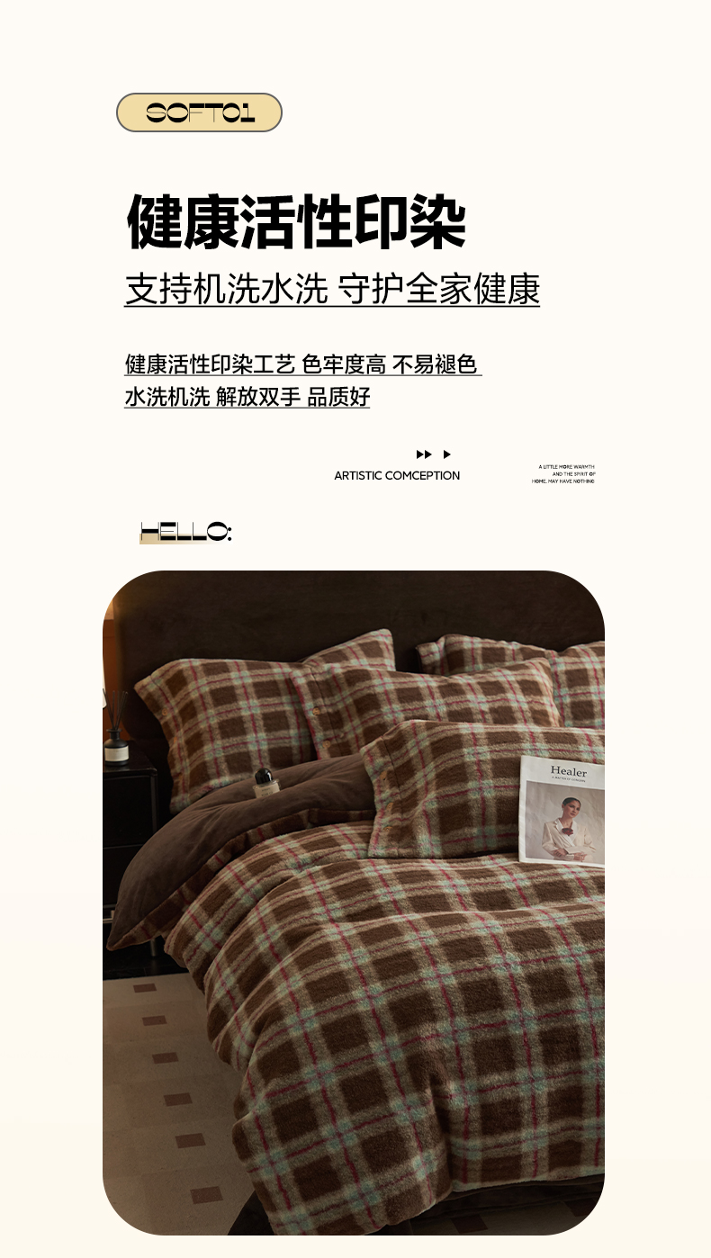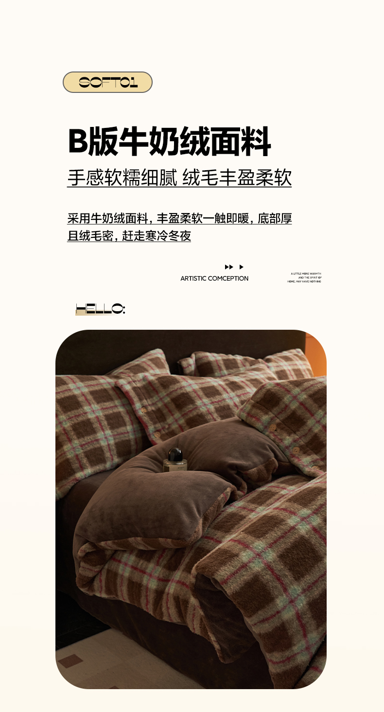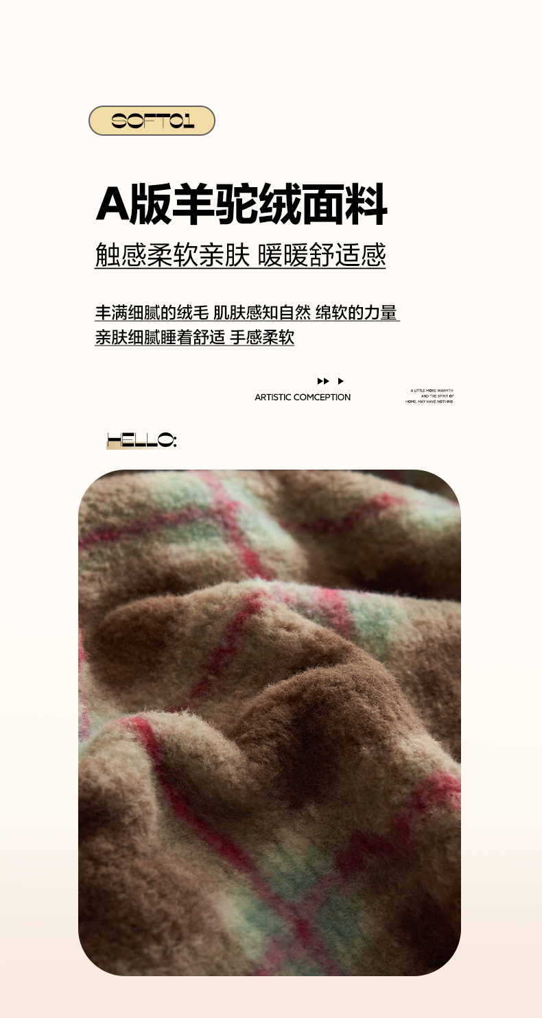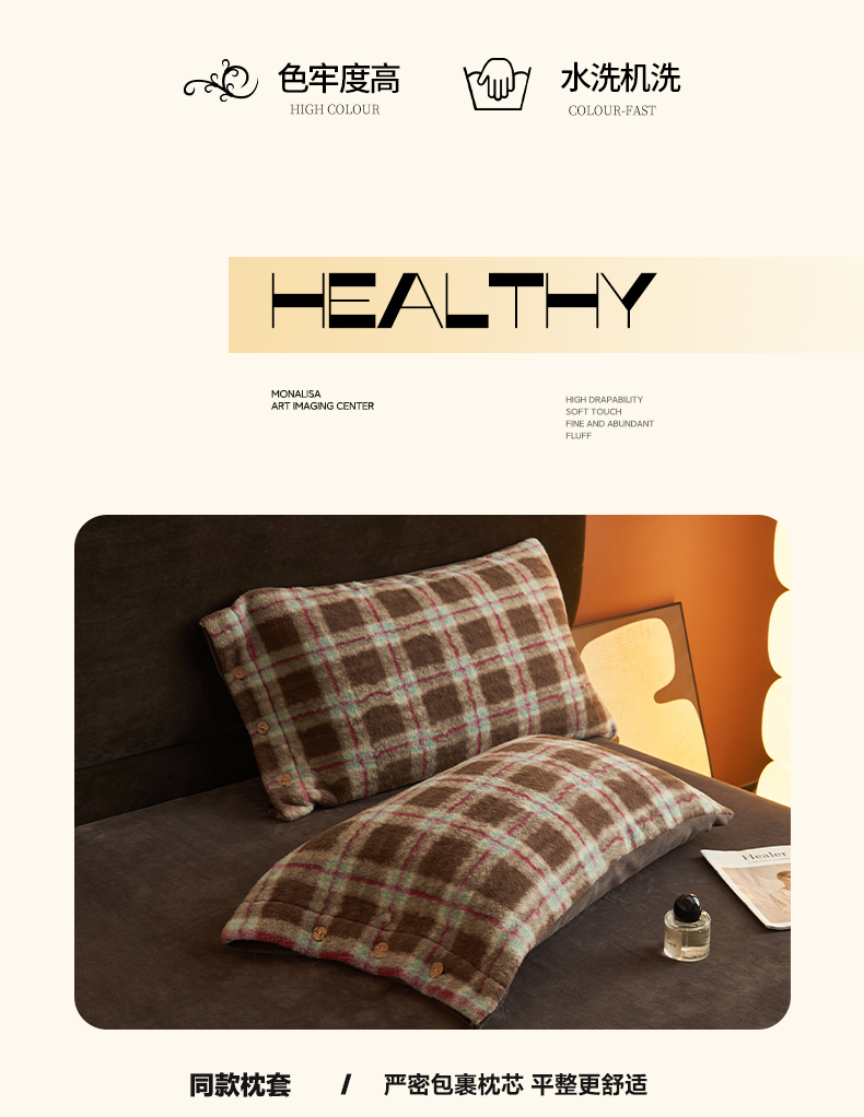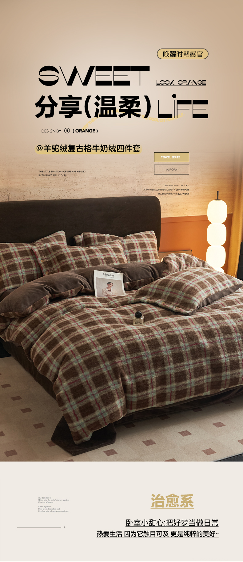 商品名称:早晨家纺 2025新款230g羊驼绒复古格牛奶绒四件套 慕池格