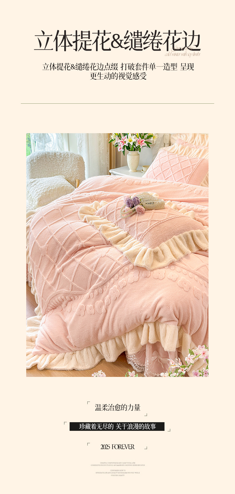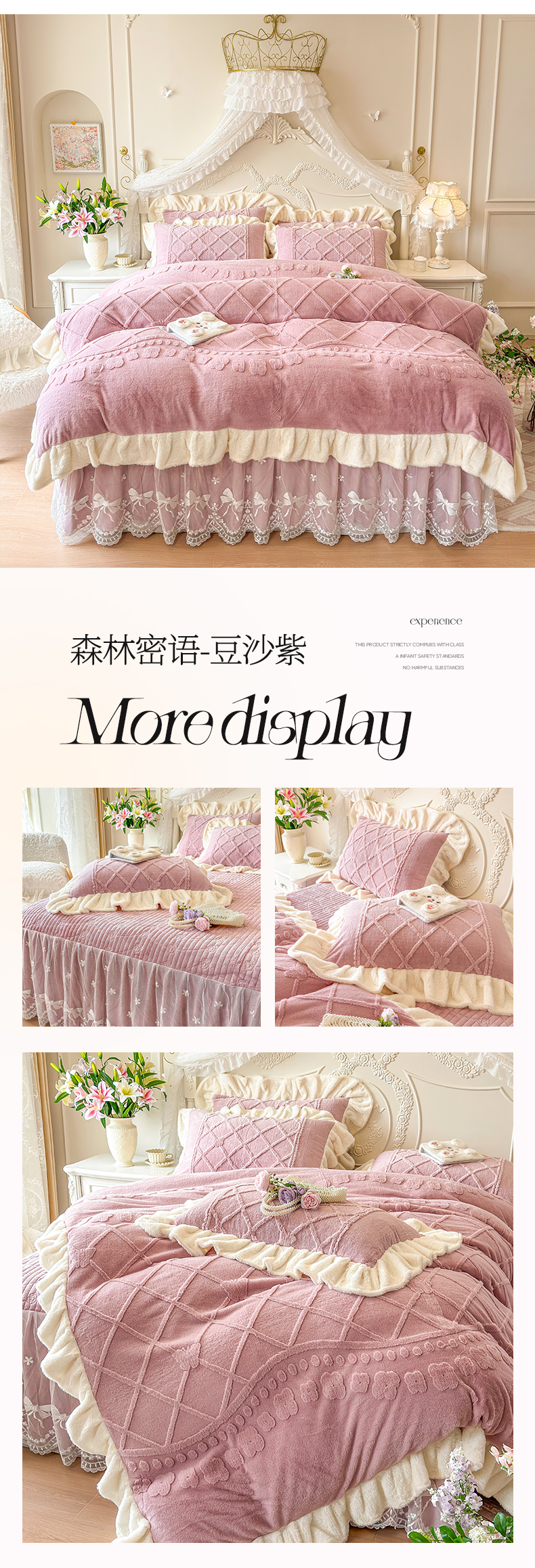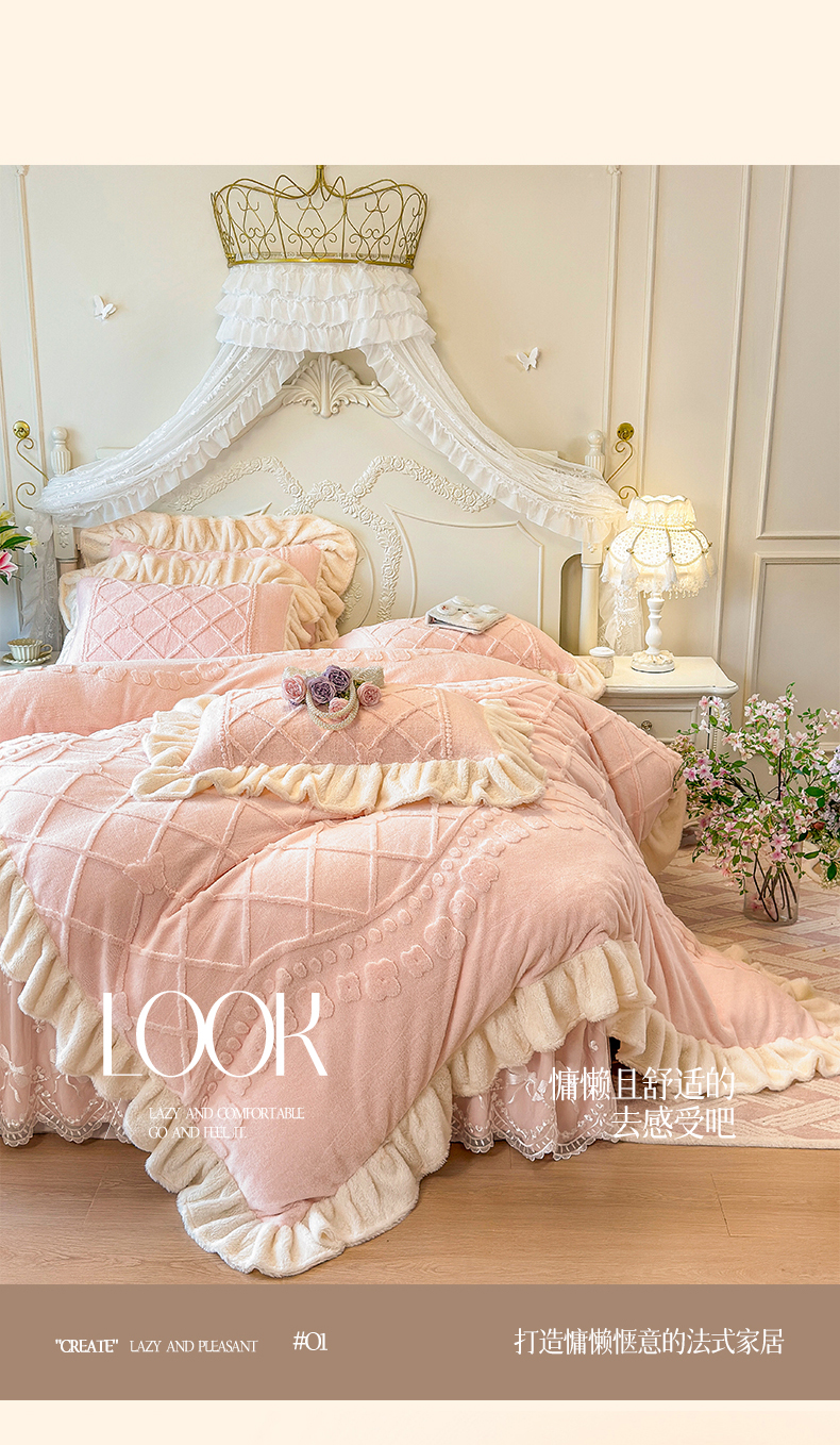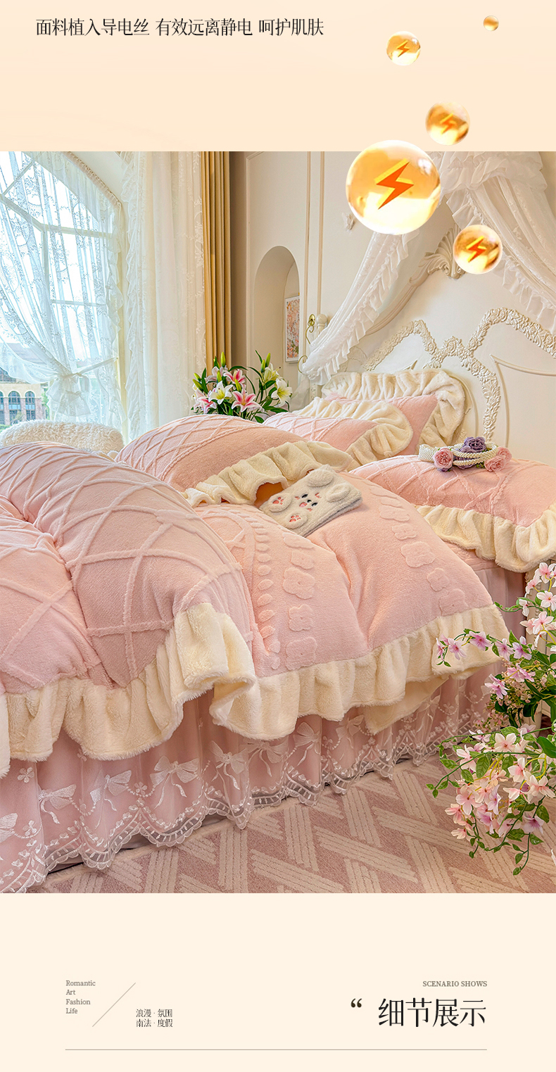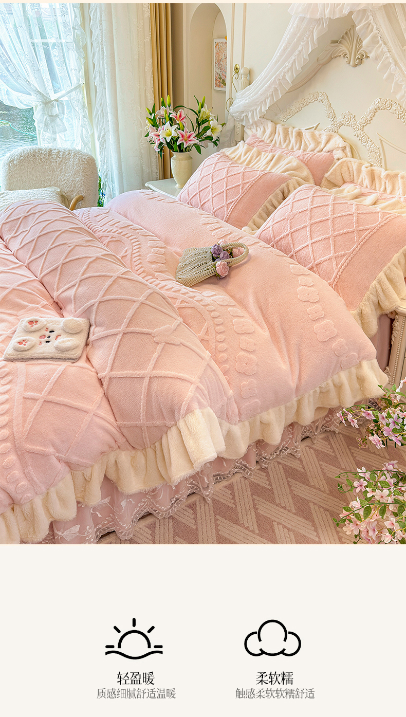 (总)宜凡家纺 2025新款兔绒提花牛奶绒夹棉床裙四件套,爱心 少女粉,爱心 粉紫,爱心 驼色,蝶舞 大红,蝶舞 米色,蝶舞 浅紫,蝶舞 玉色,简爱 苍青,简爱 豆沙紫,简爱 玉色,樱桃 苍青,樱桃 豆沙紫,樱桃 奶油白