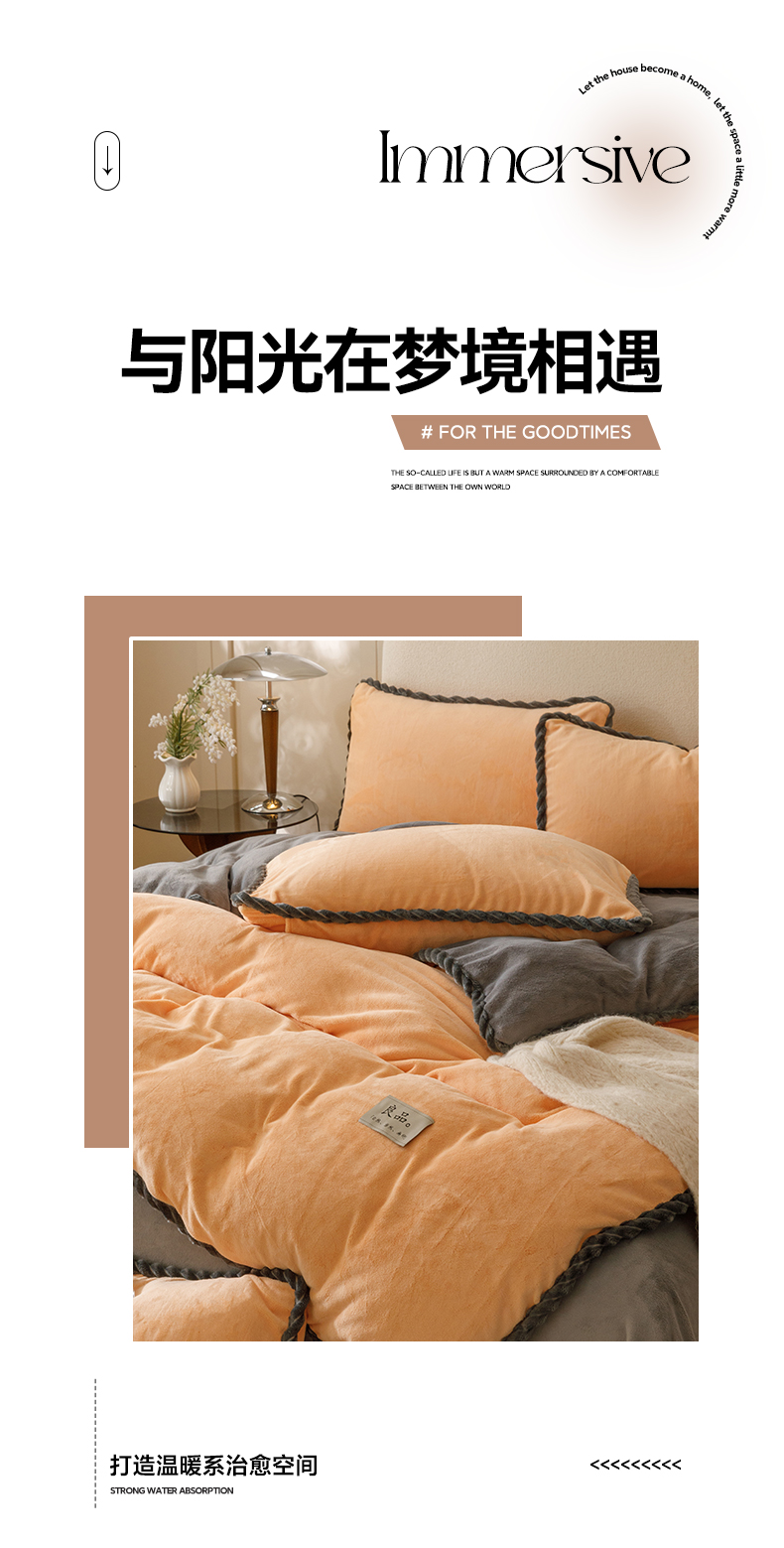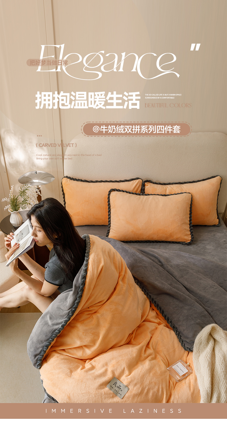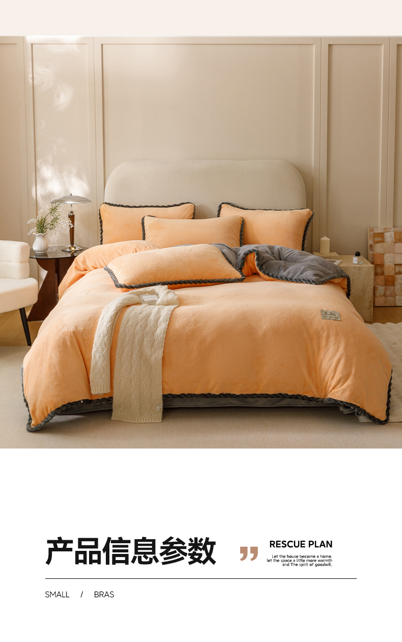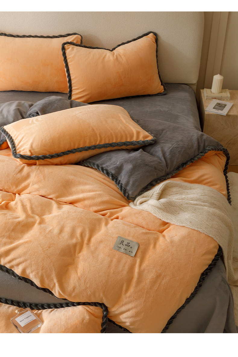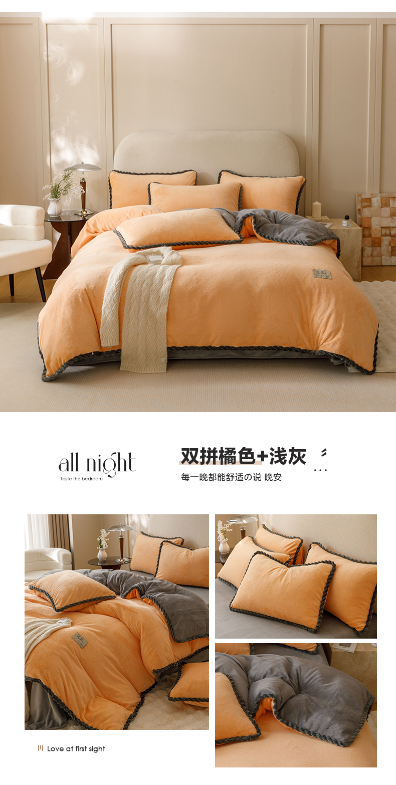 商品名称:早晨家纺 2025新款牛奶绒双拼四件套 双拼橘色+浅灰